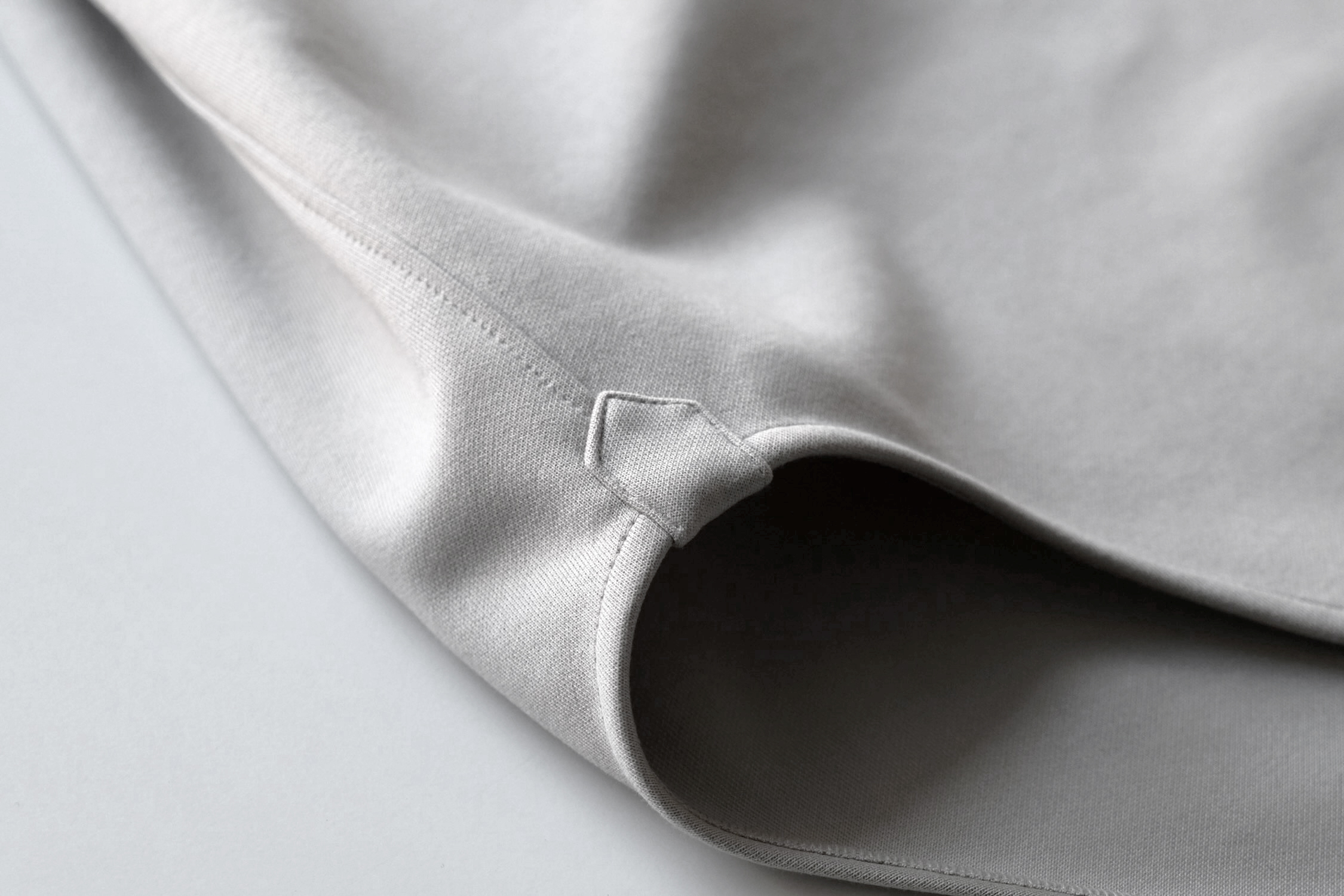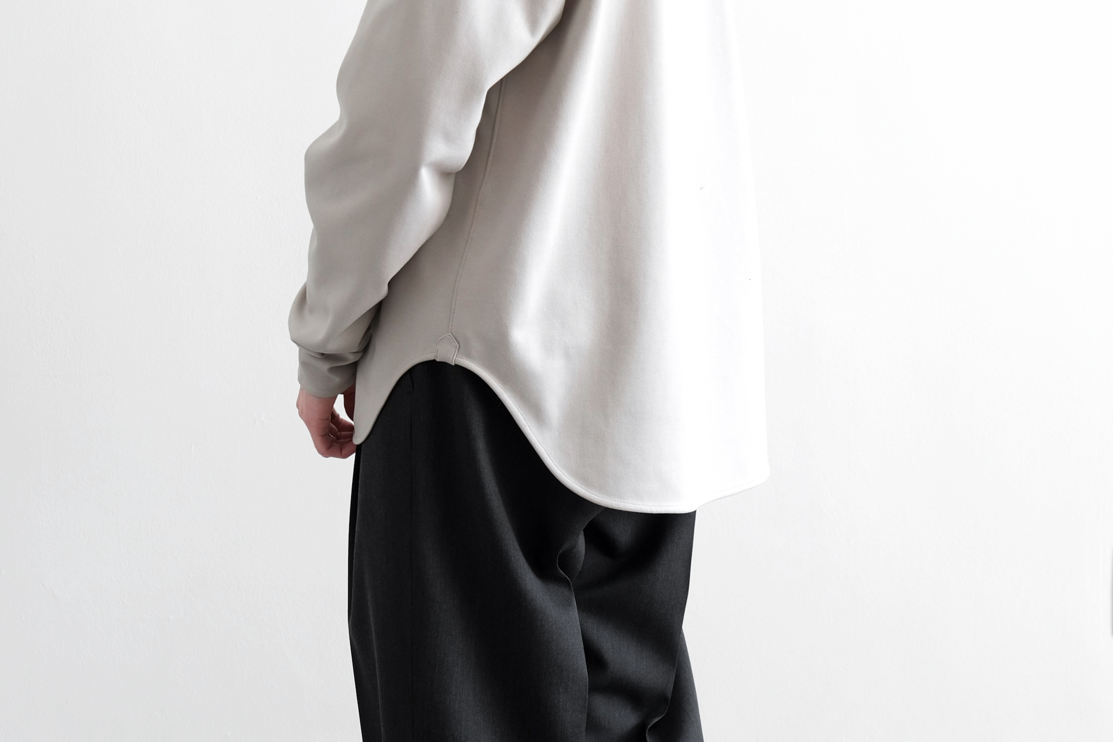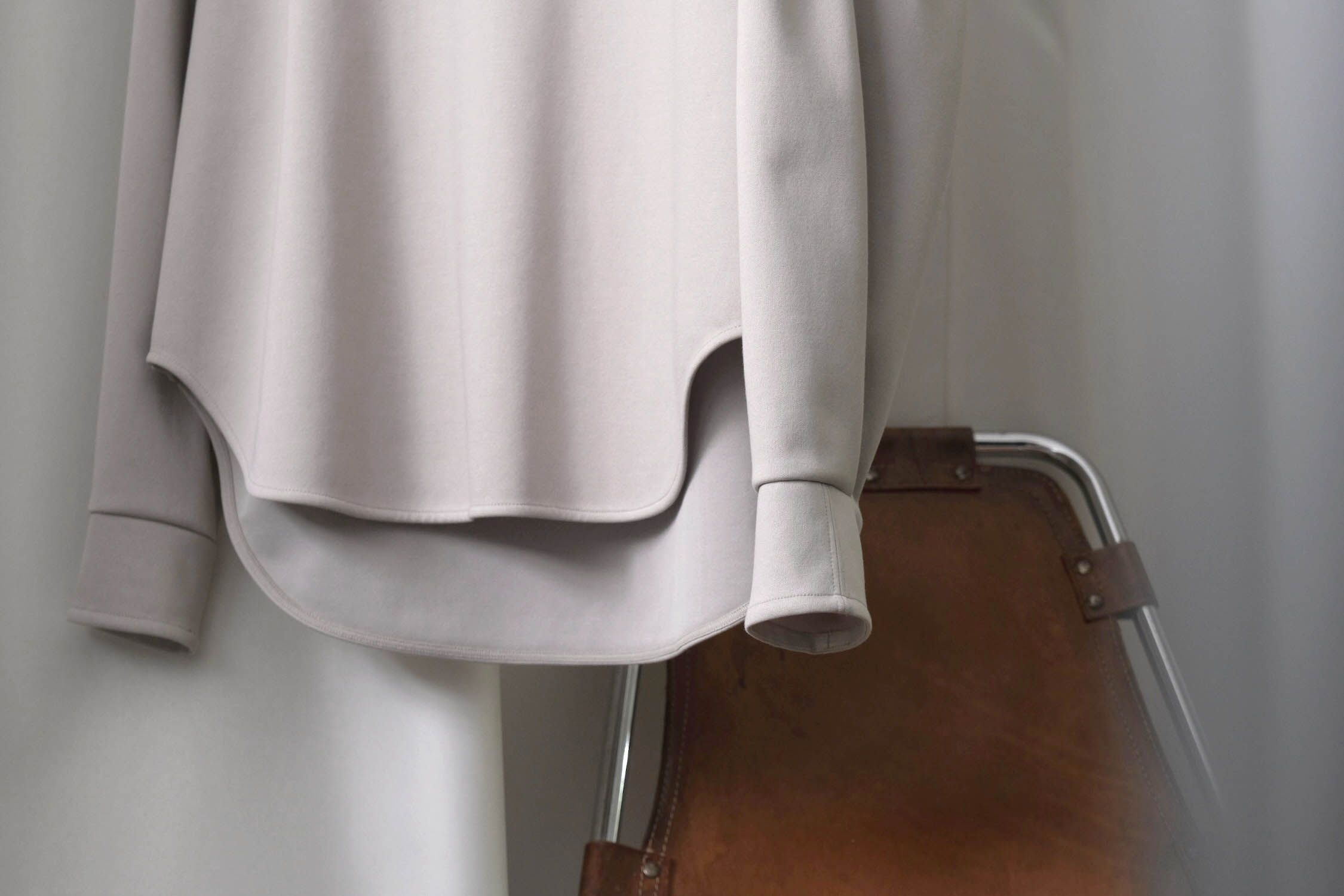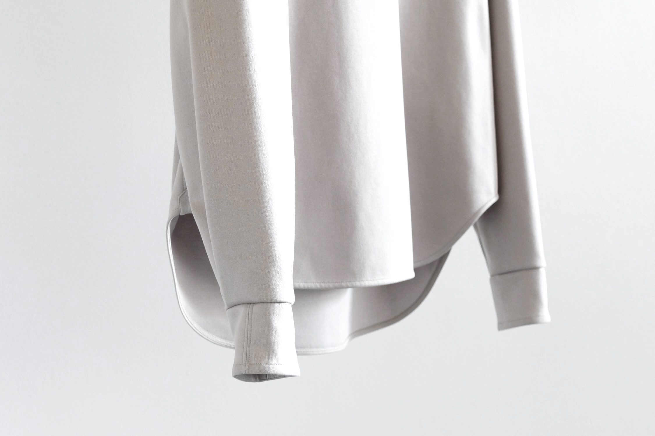 ラウンドしたガゼット付きの裾など、一枚着として安心感ある高いデザイン性も◎