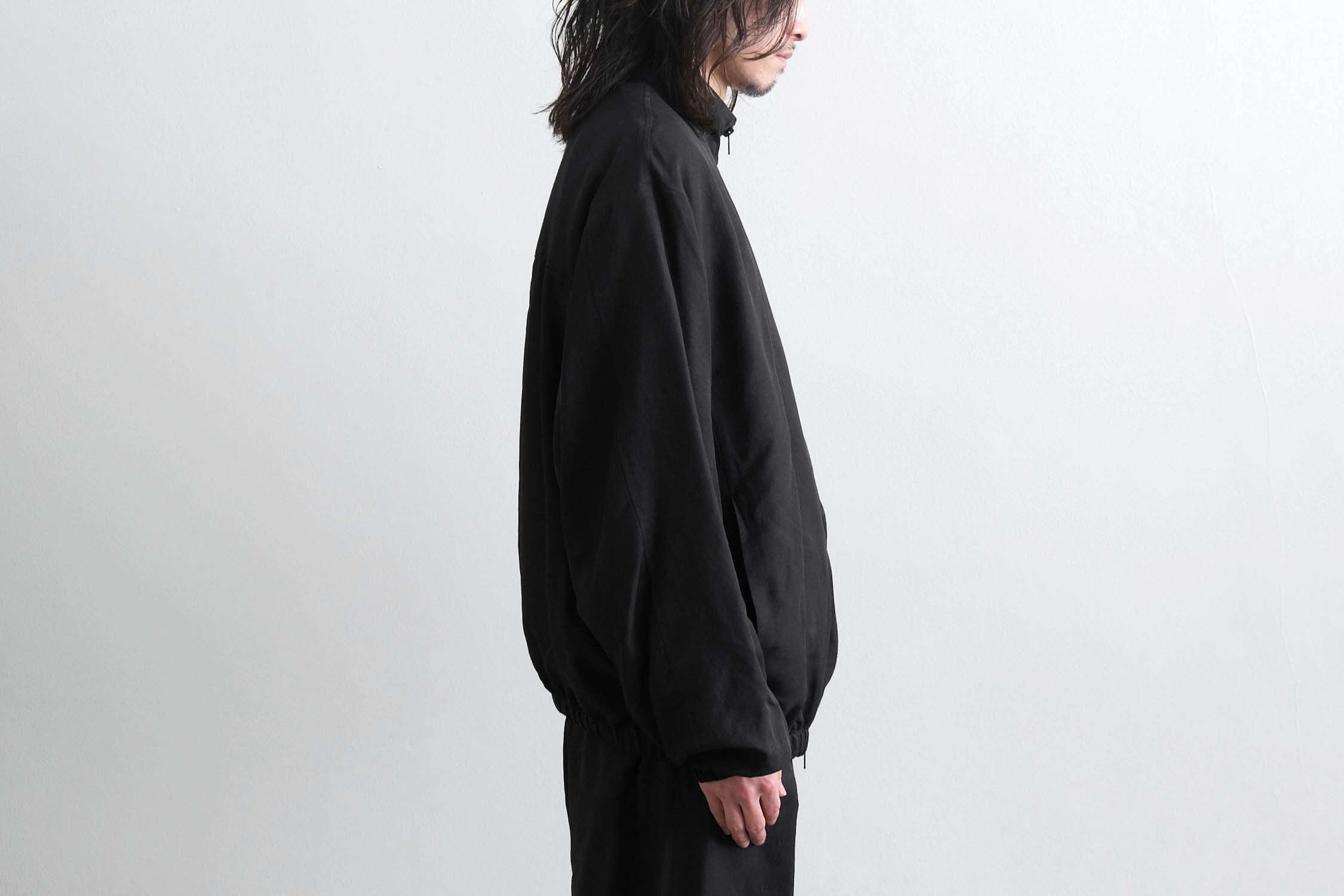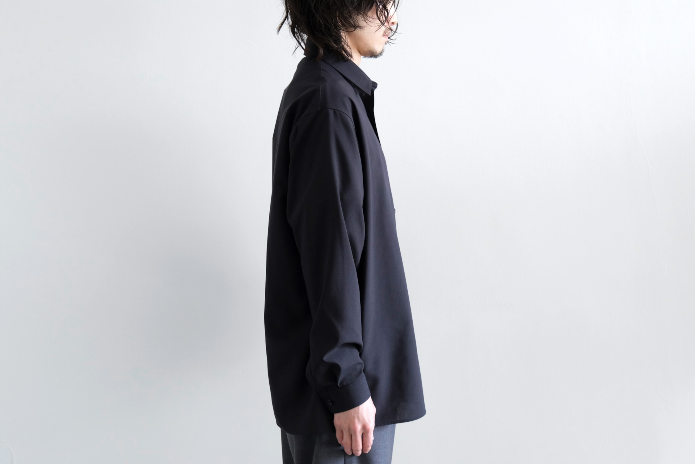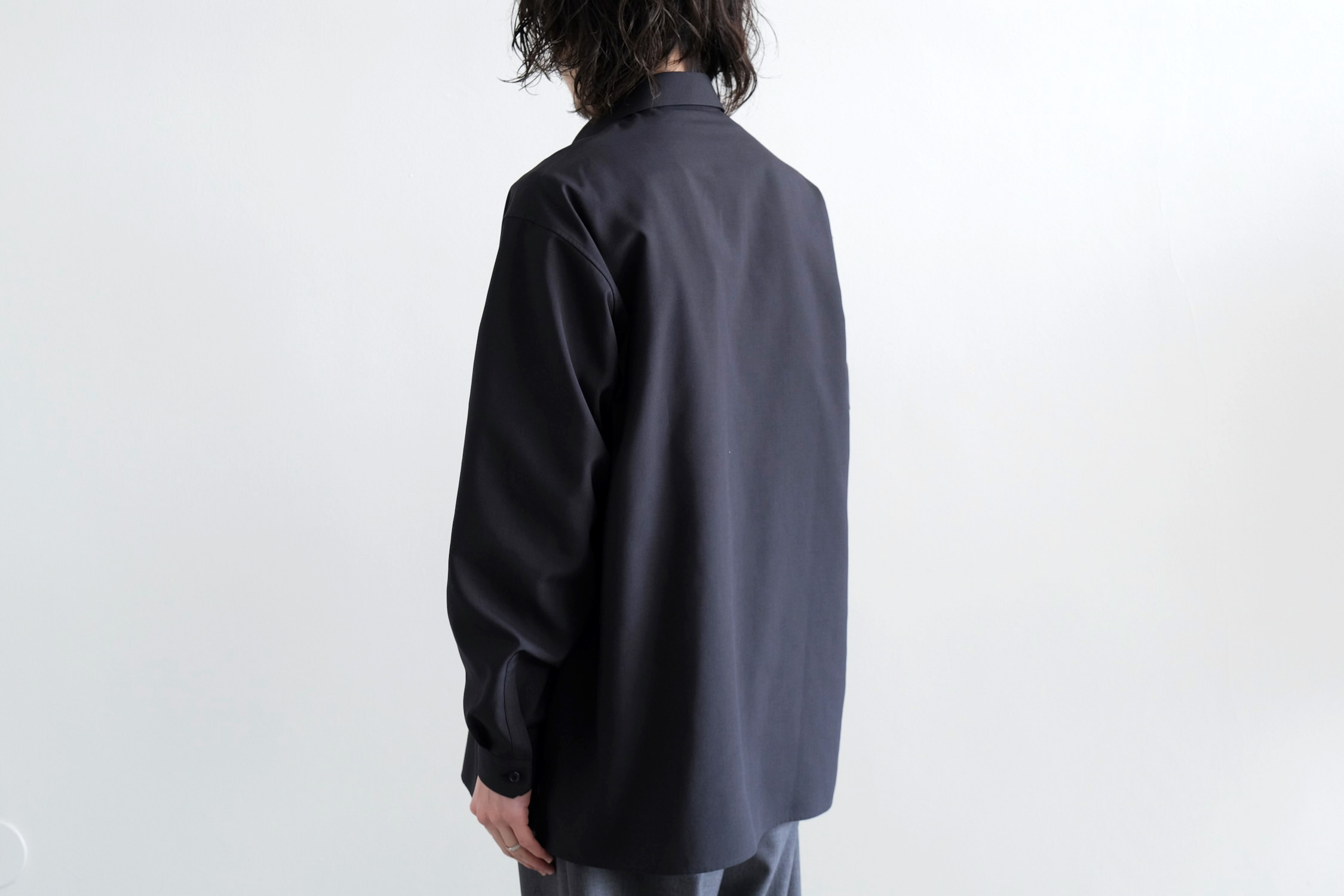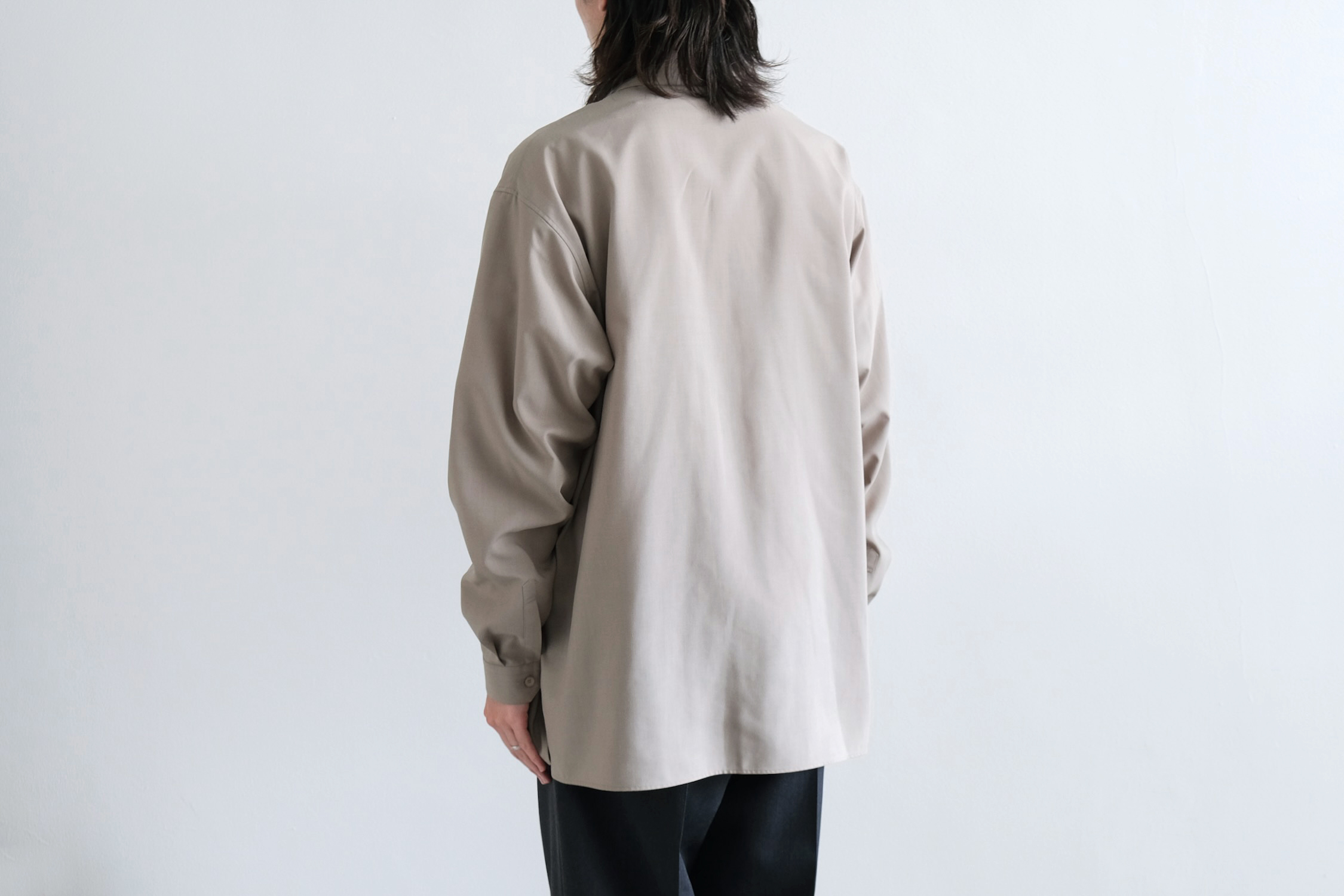 計算されたドロップショルダーにボリュームある袖で全体的にゆとりを持たせた現代的なシルエット。