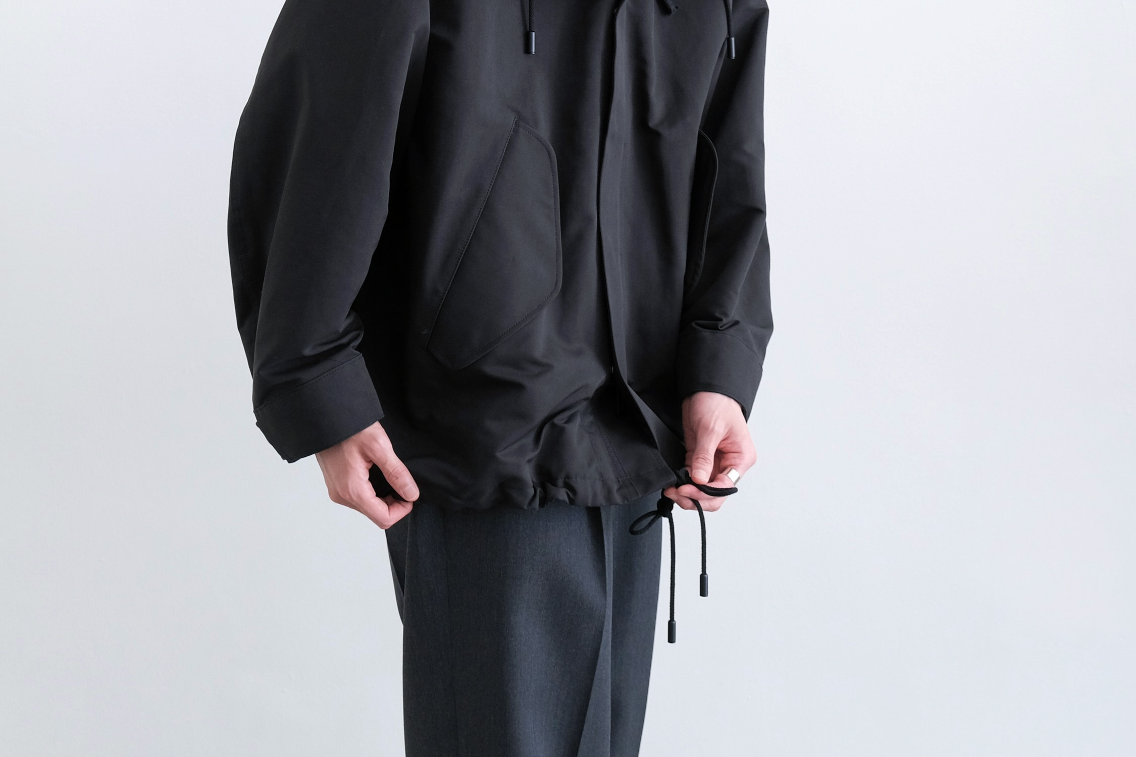 M-65モッズコートを踏襲したダックテイル型にラウンドした裾。