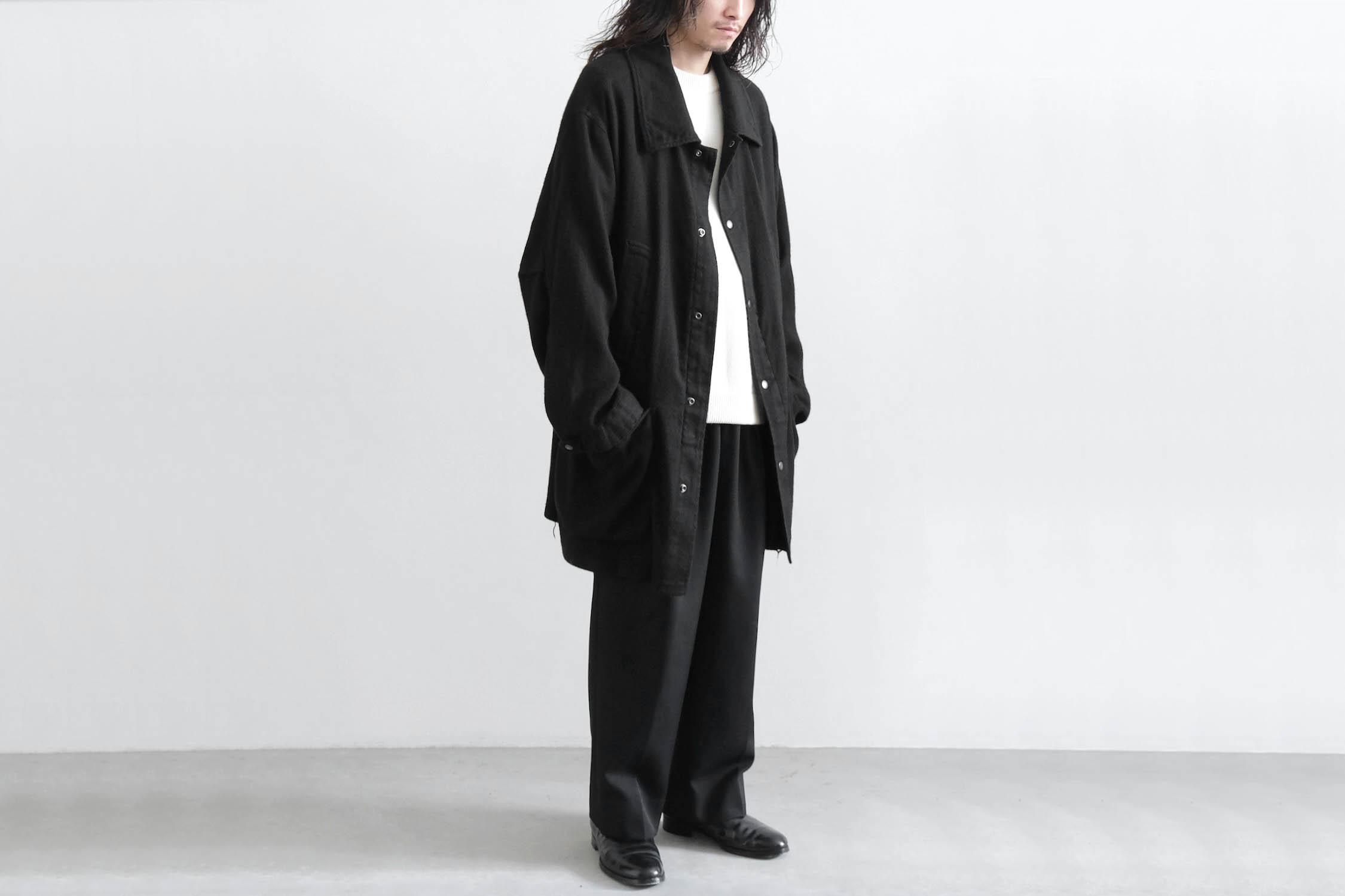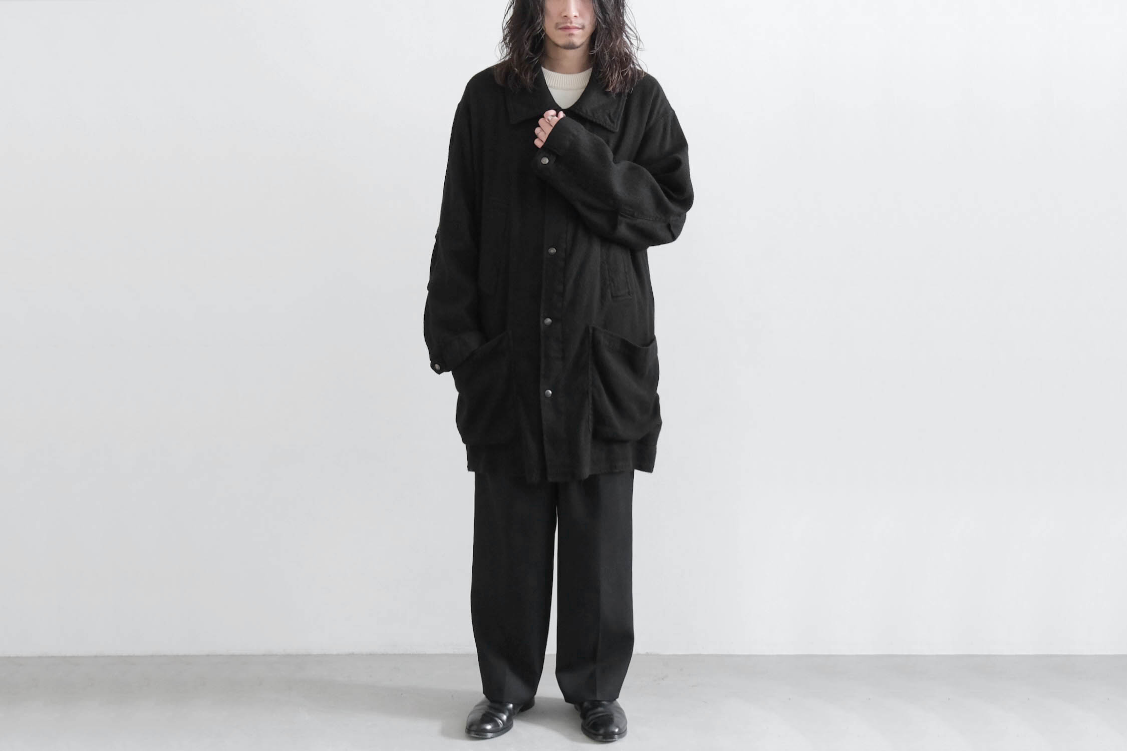 高品質原料のしなやかさやドレープ性に起毛の粗さが同居する独特の表情が◎