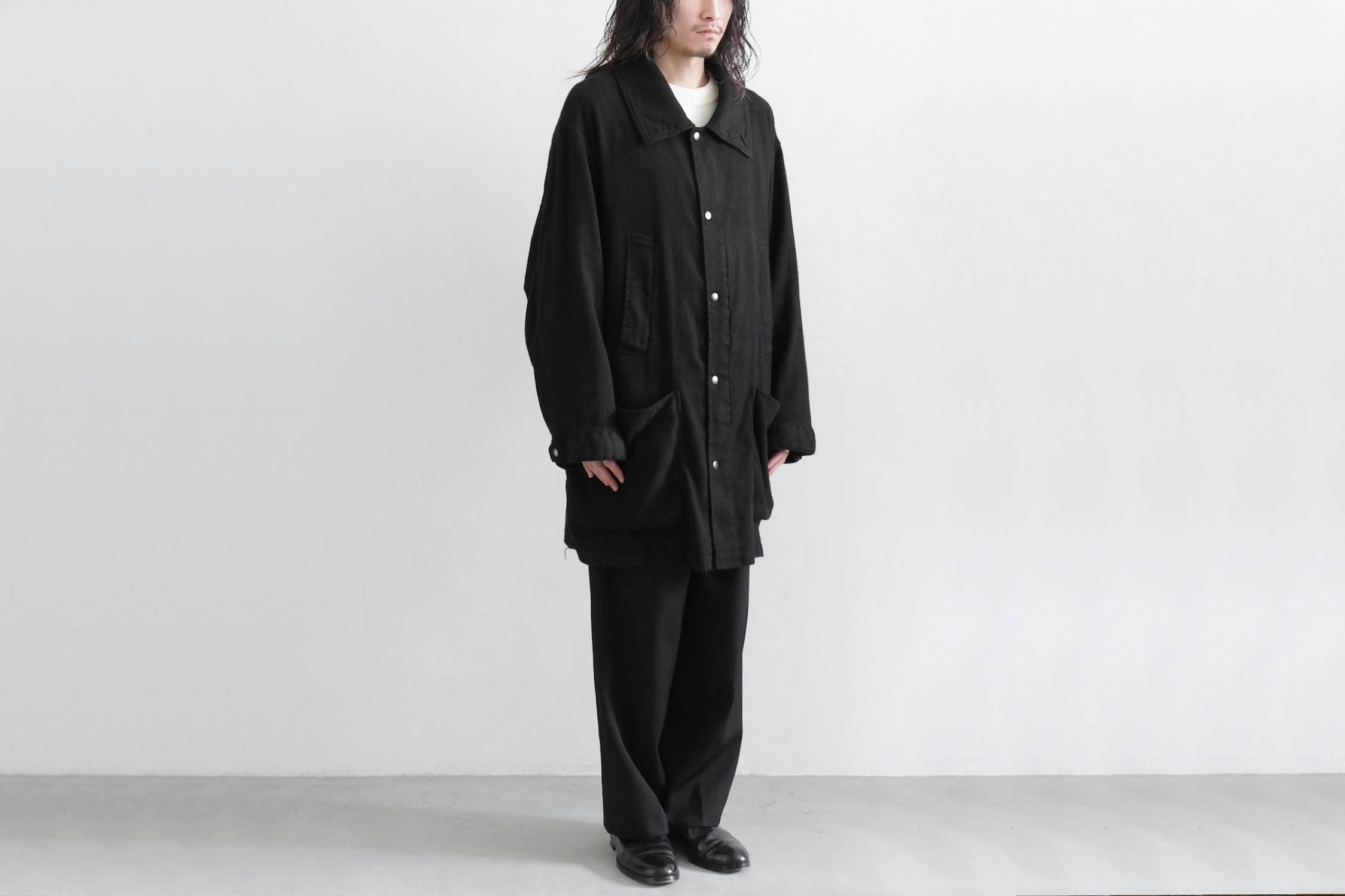 ドロップショルダーに広く取ったアームホールでたっぷりとした分量のオーバーサイズシルエット。