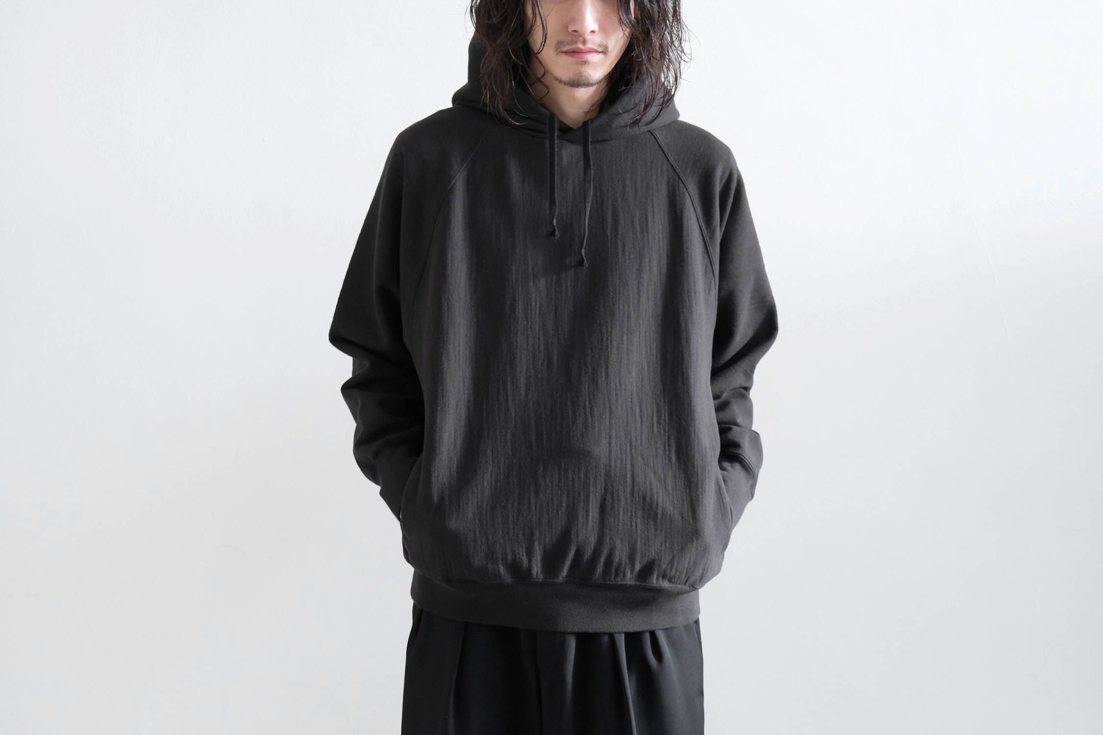 一枚着るだけでスタイリングに動きを出せるスエットフーディー。