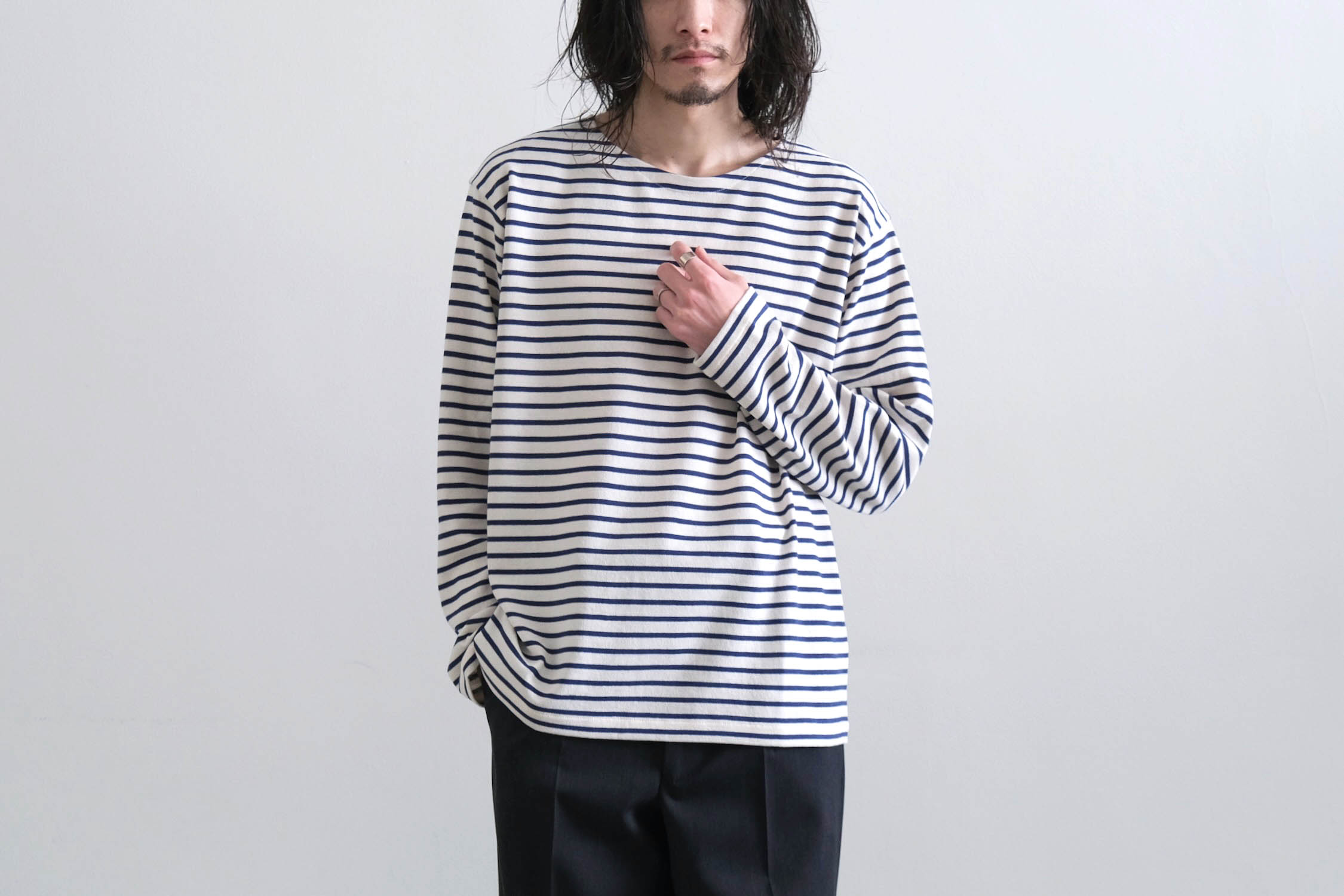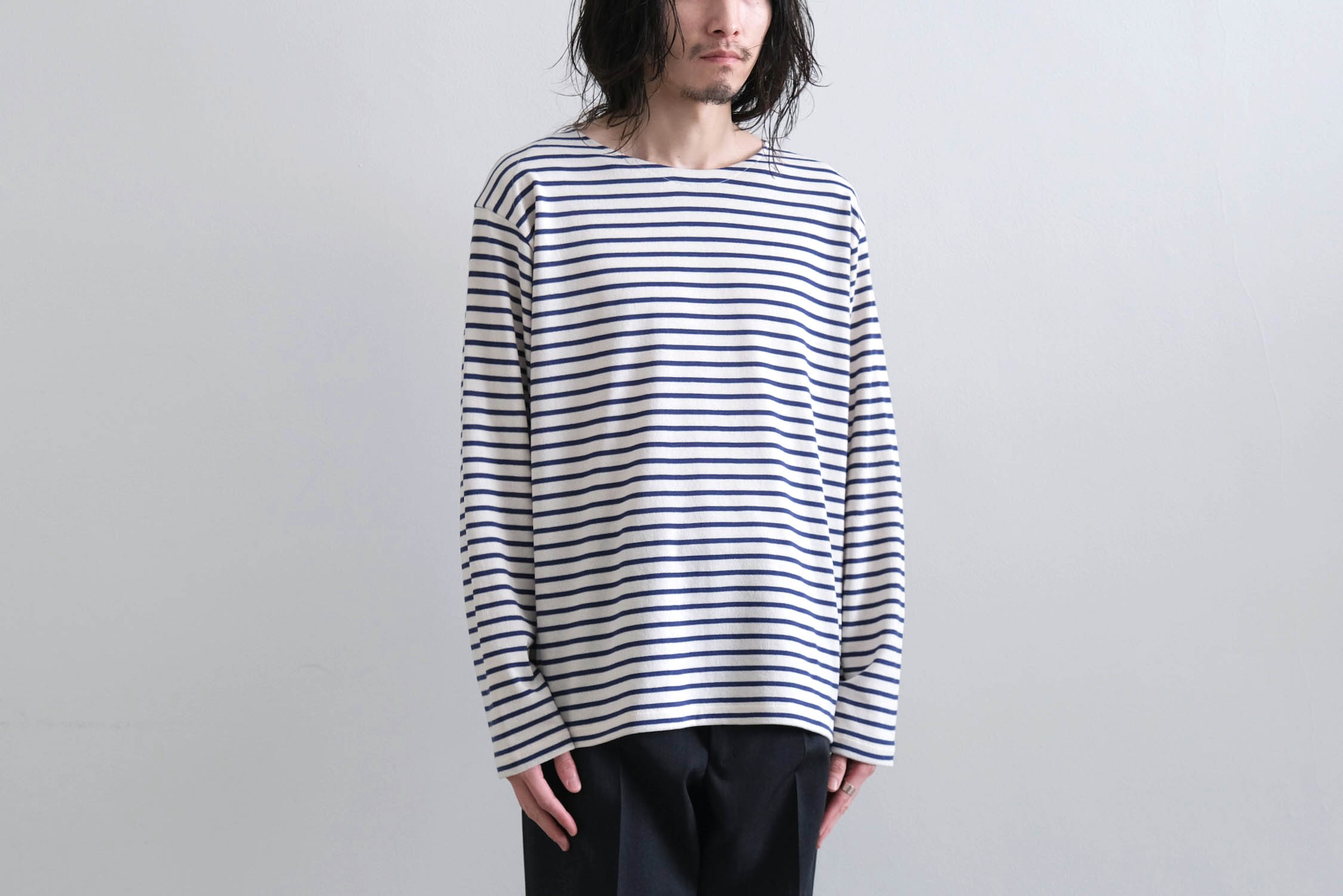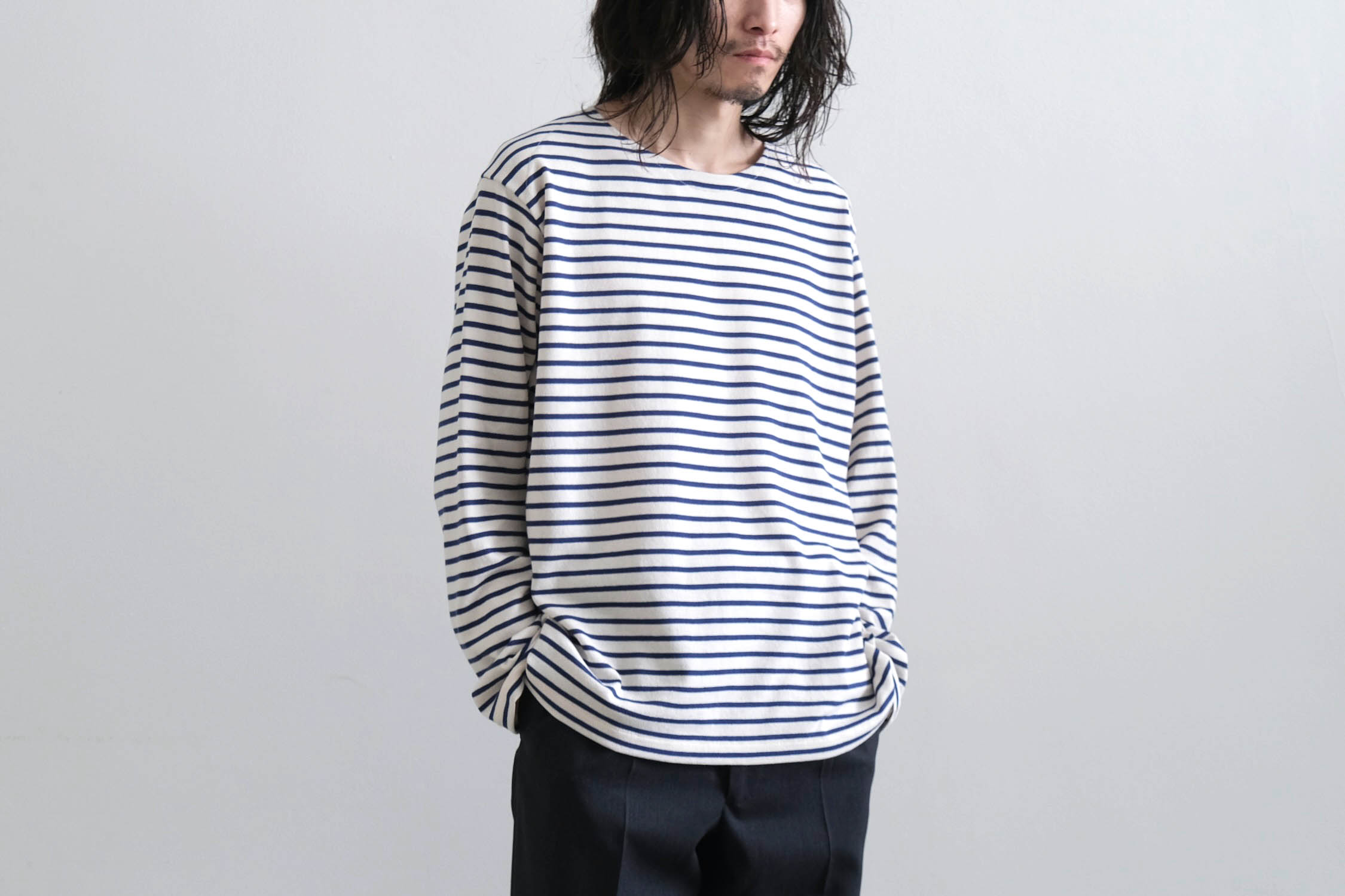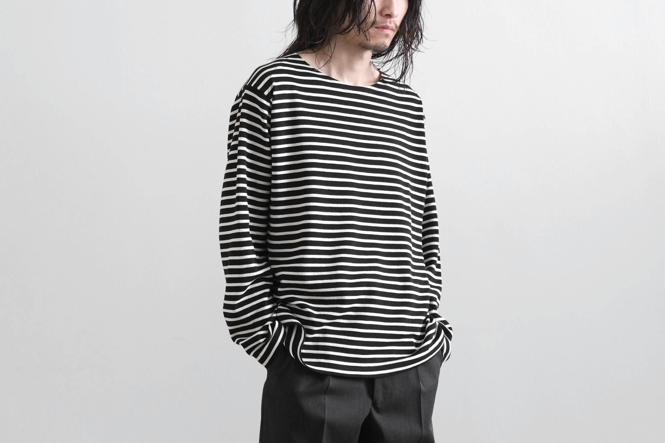 素材使いやシルエットでカジュアルさを軽減したBATONERのバスクシャツシリーズ。
