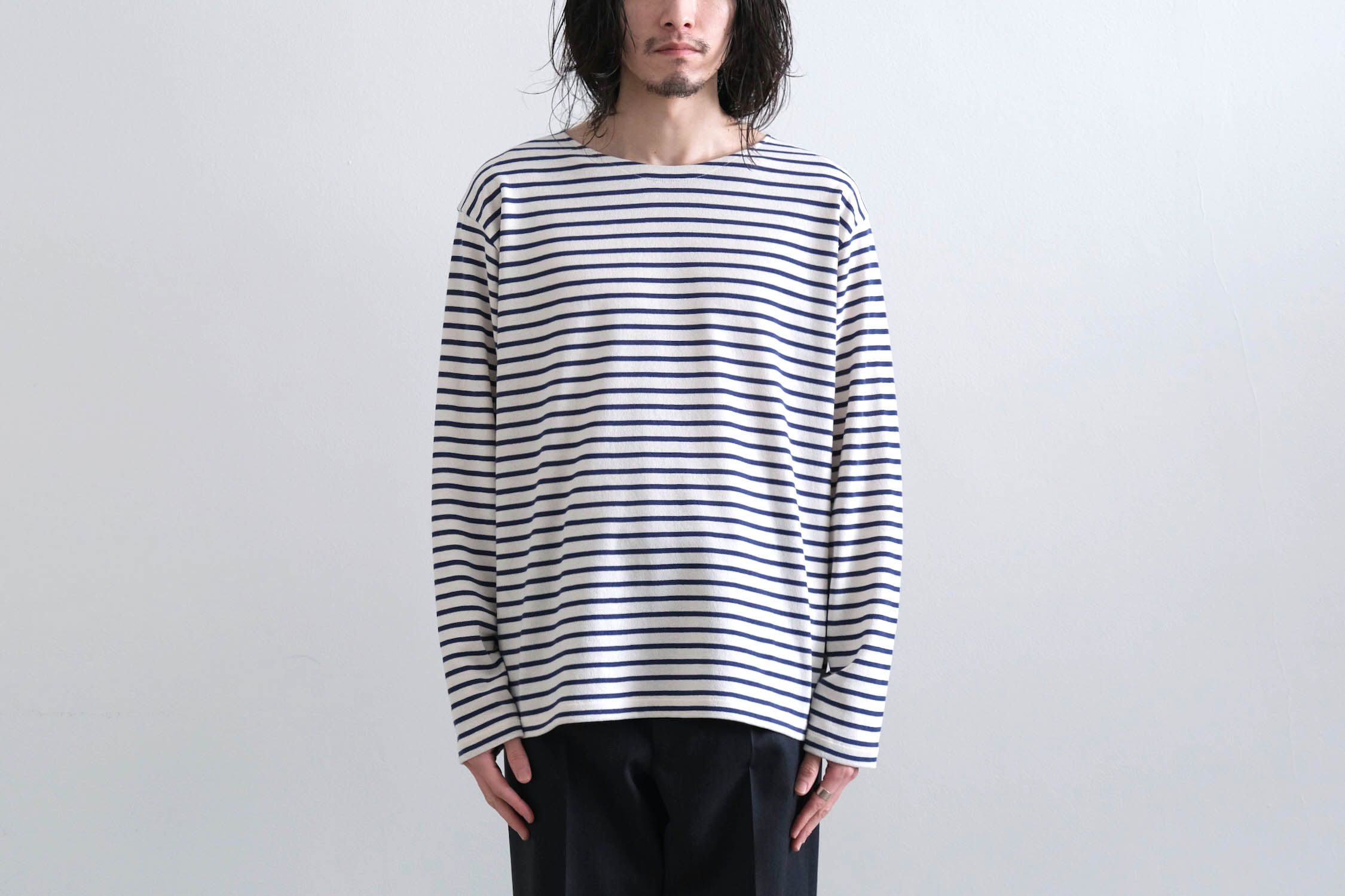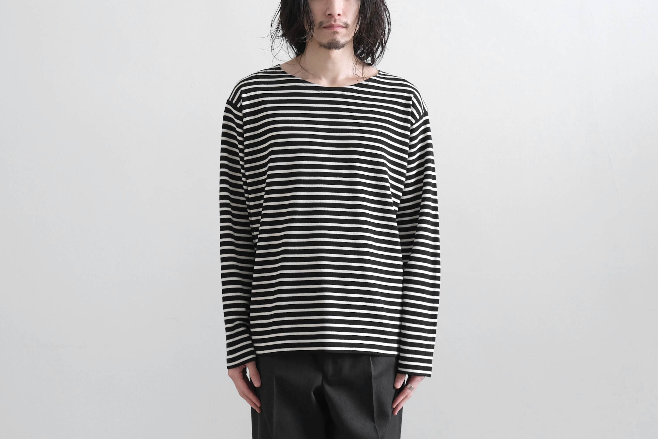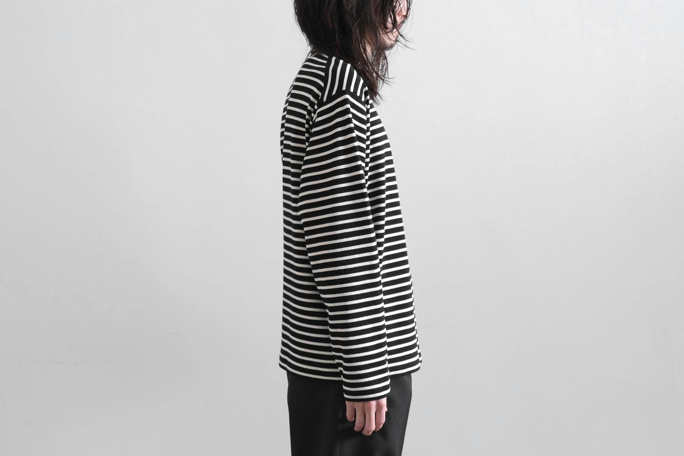 素材使いやシルエットでカジュアルさを軽減したBATONERのバスクシャツシリーズ。