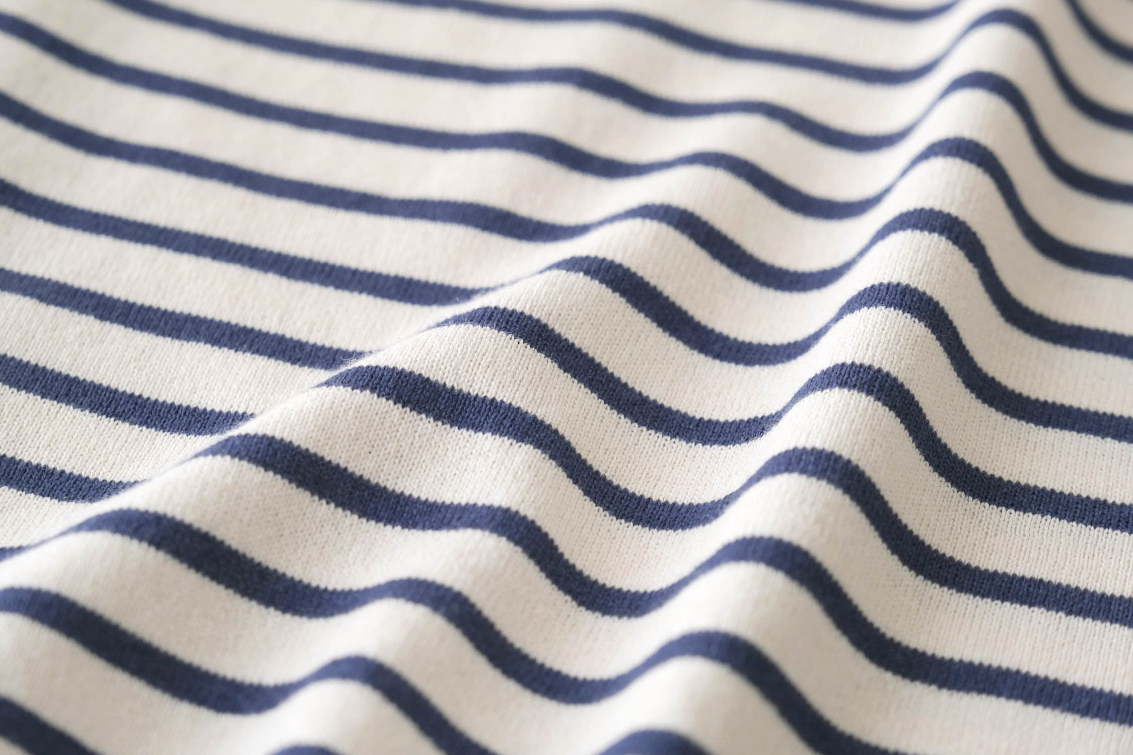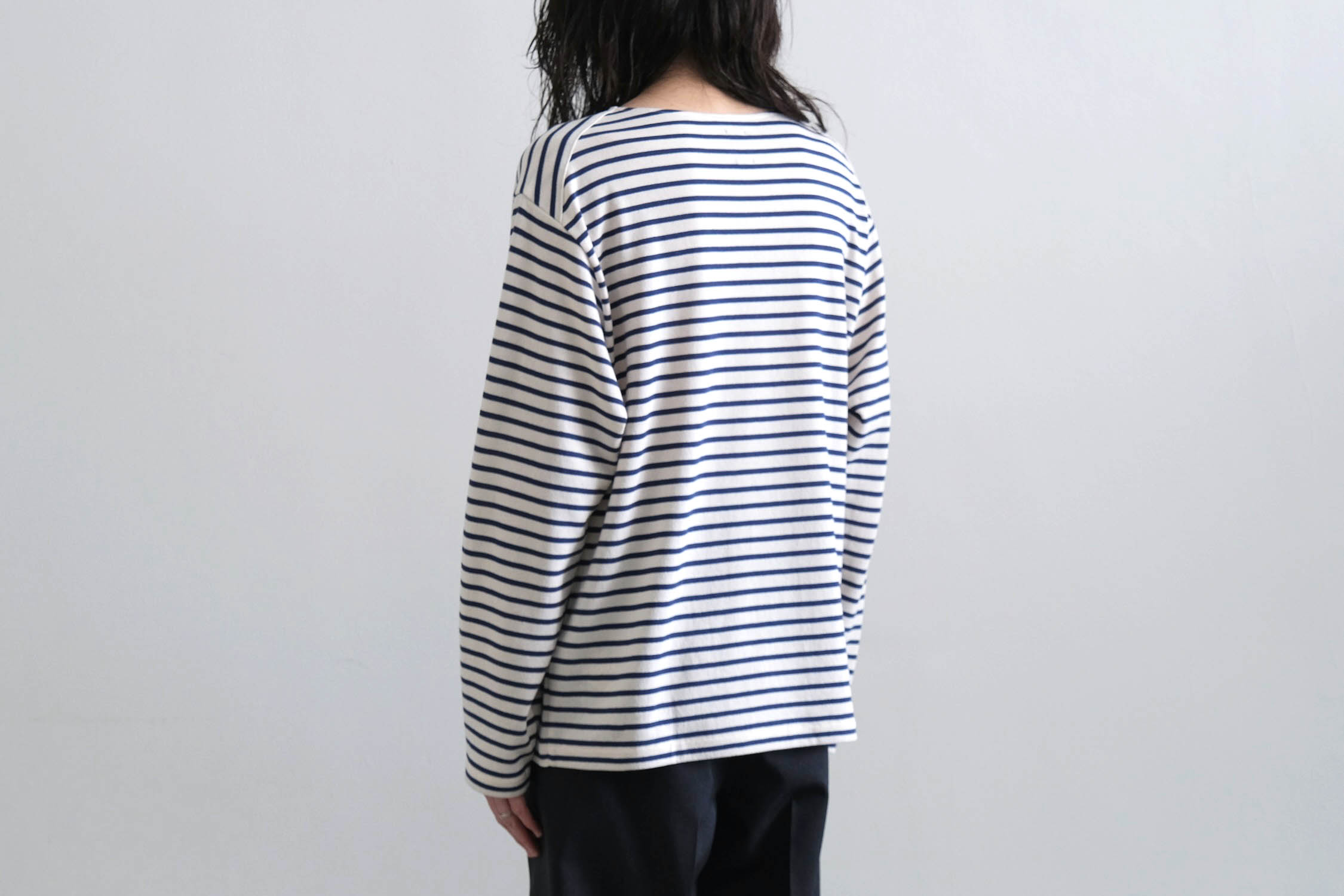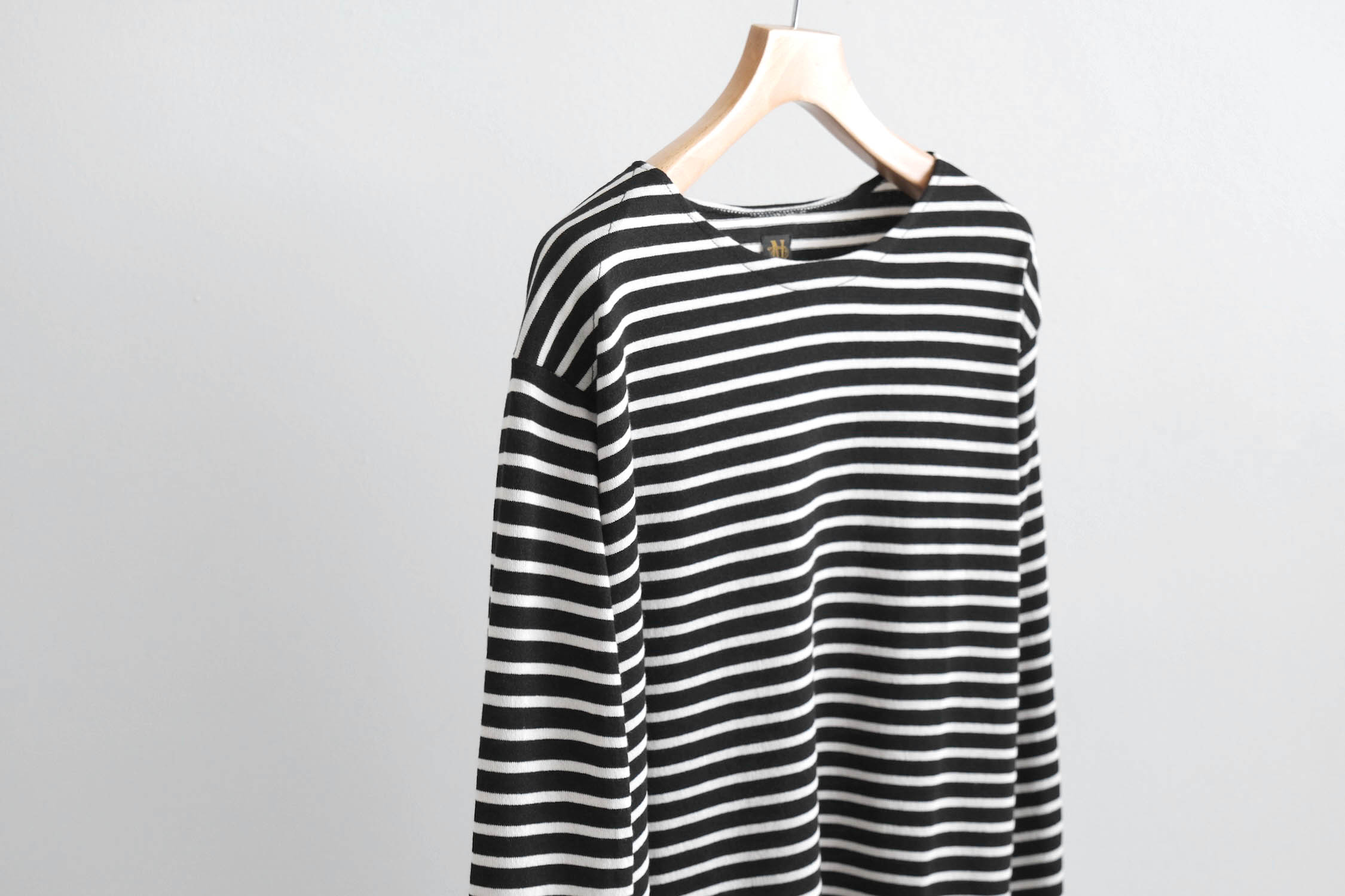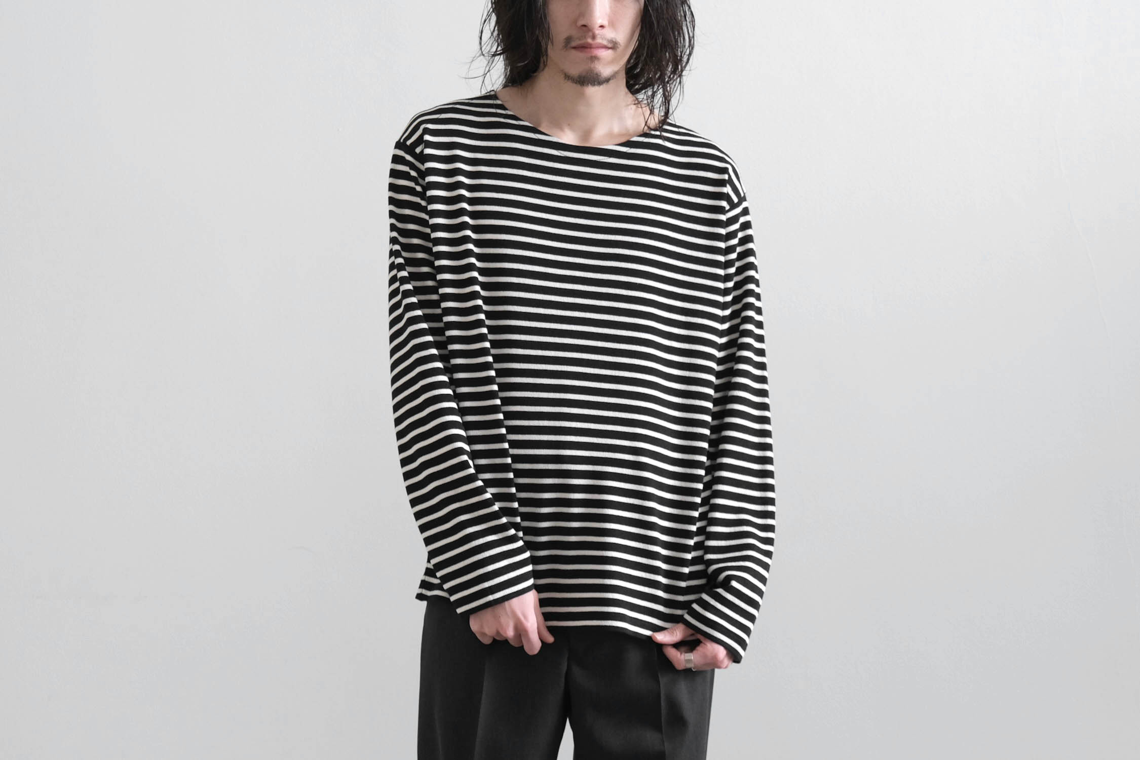 素材使いやシルエットでカジュアルさを軽減したBATONERのバスクシャツシリーズ。
