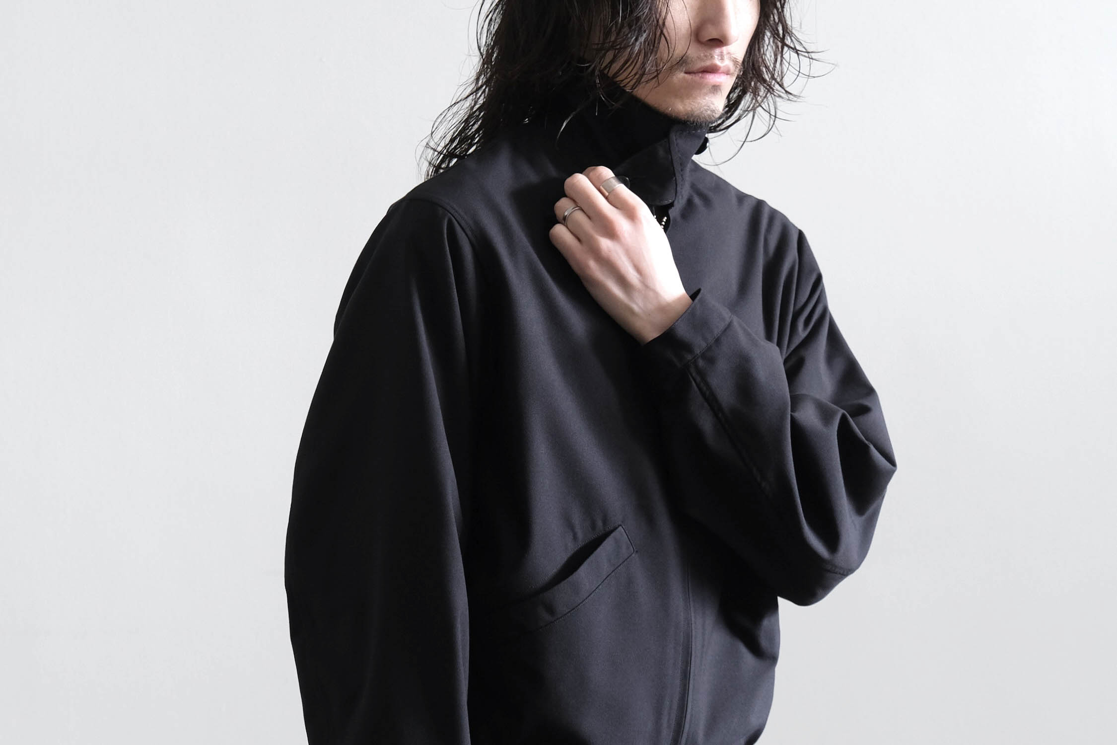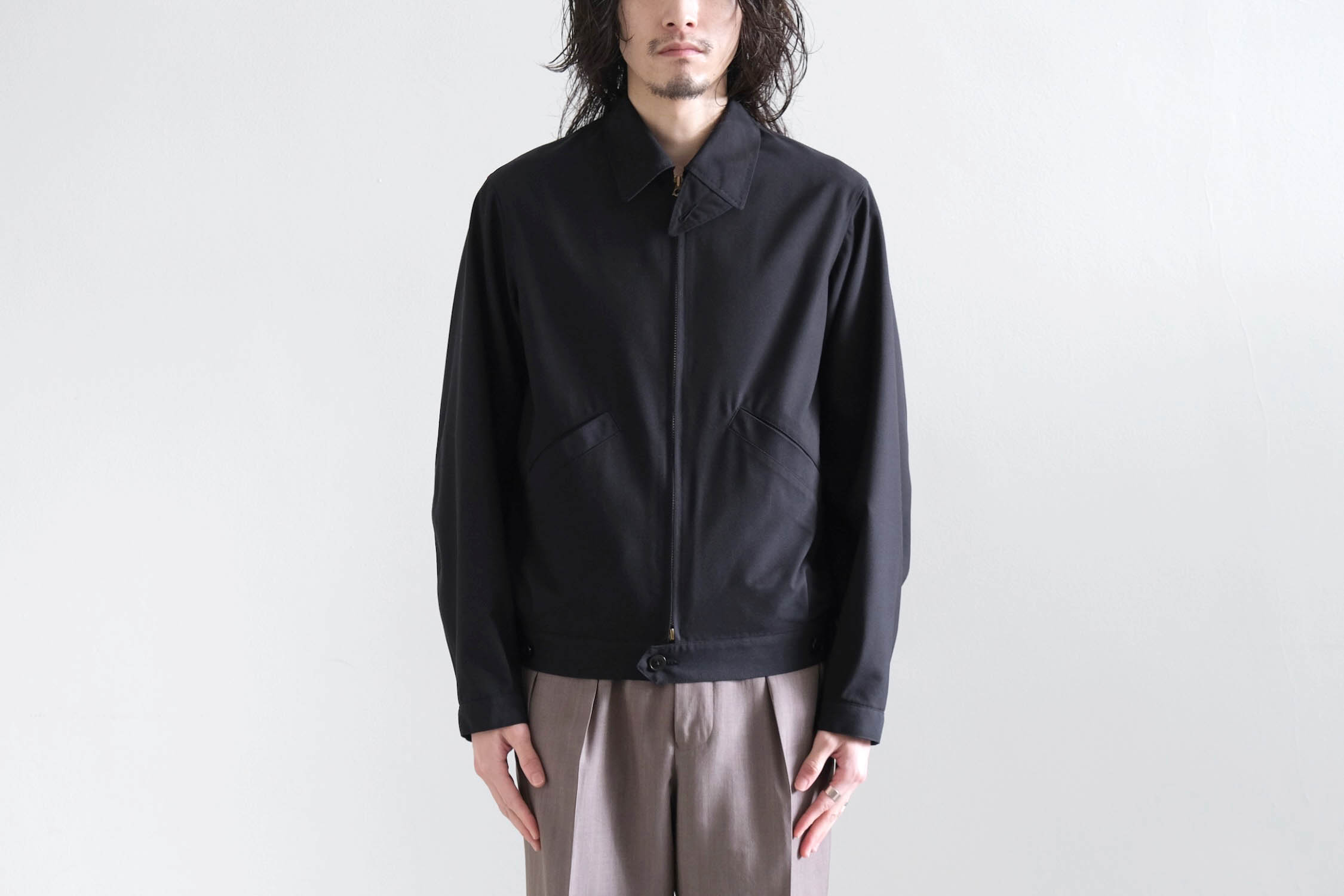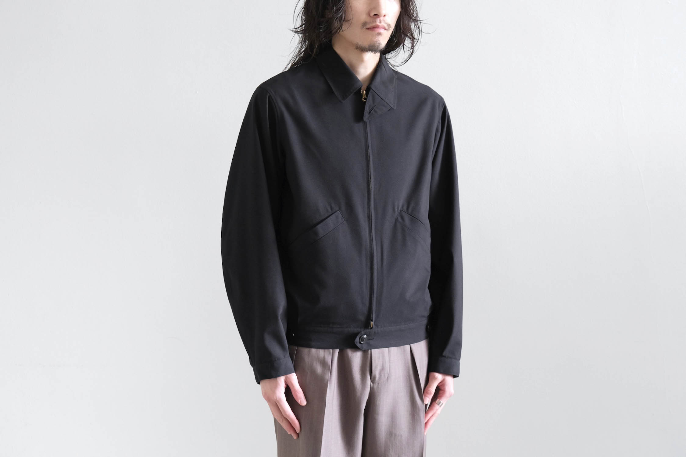 ブルゾンのようなゆとりと傾斜を持たせショルダー周りでリラックス感ある着用感。
