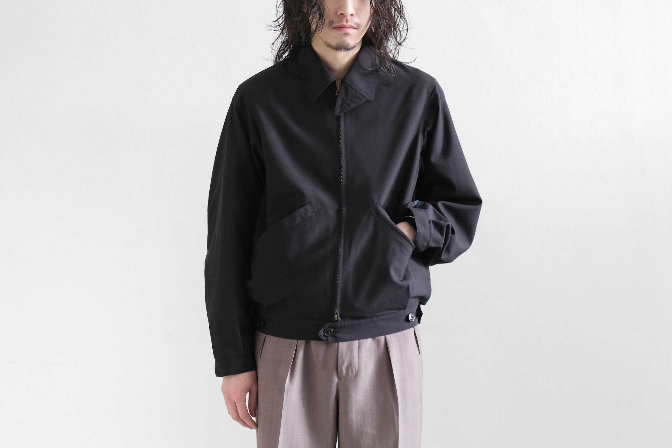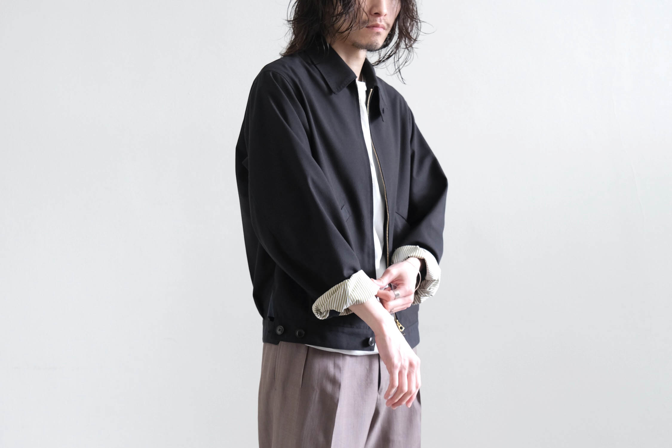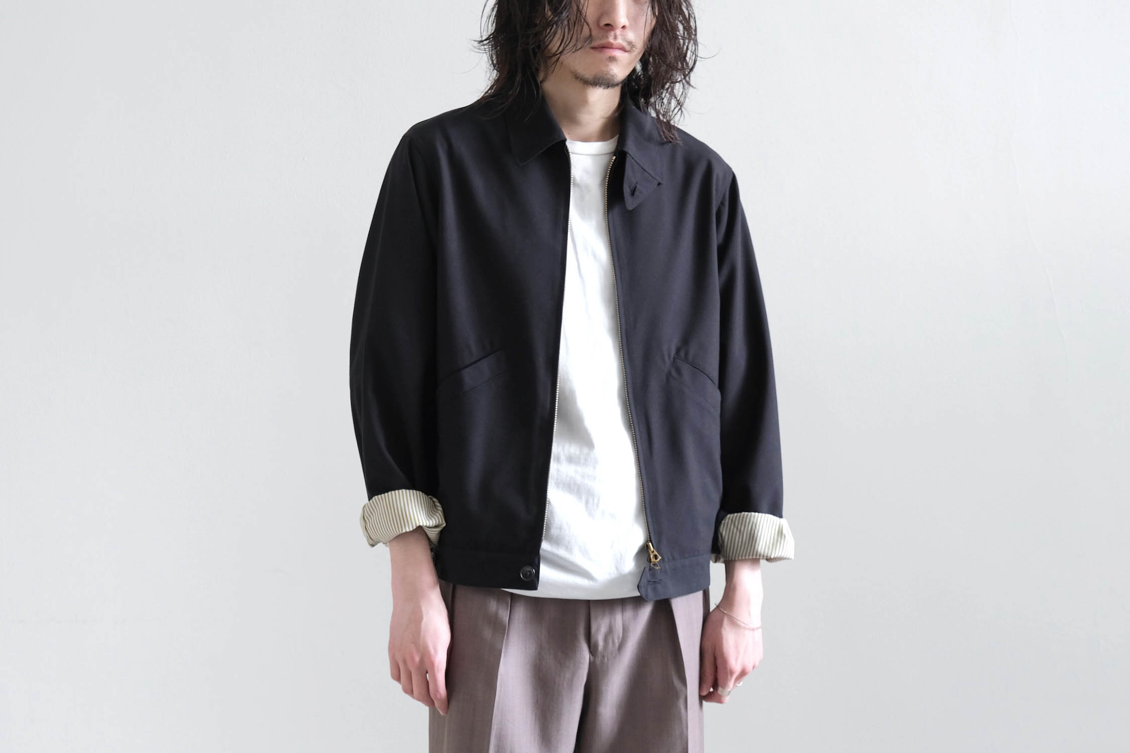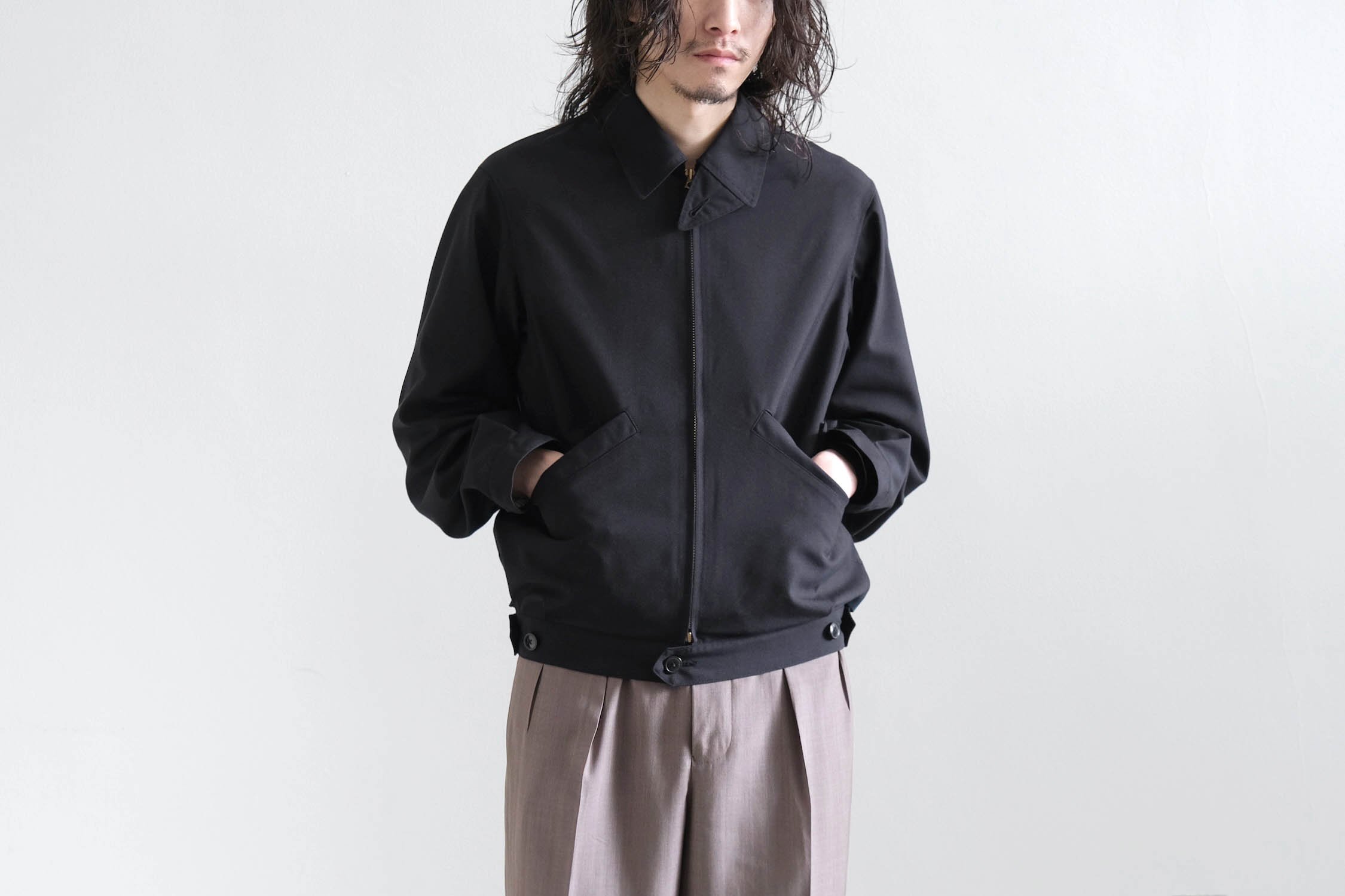 ブルゾンのようなゆとりと傾斜を持たせショルダー周りでリラックス感ある着用感。