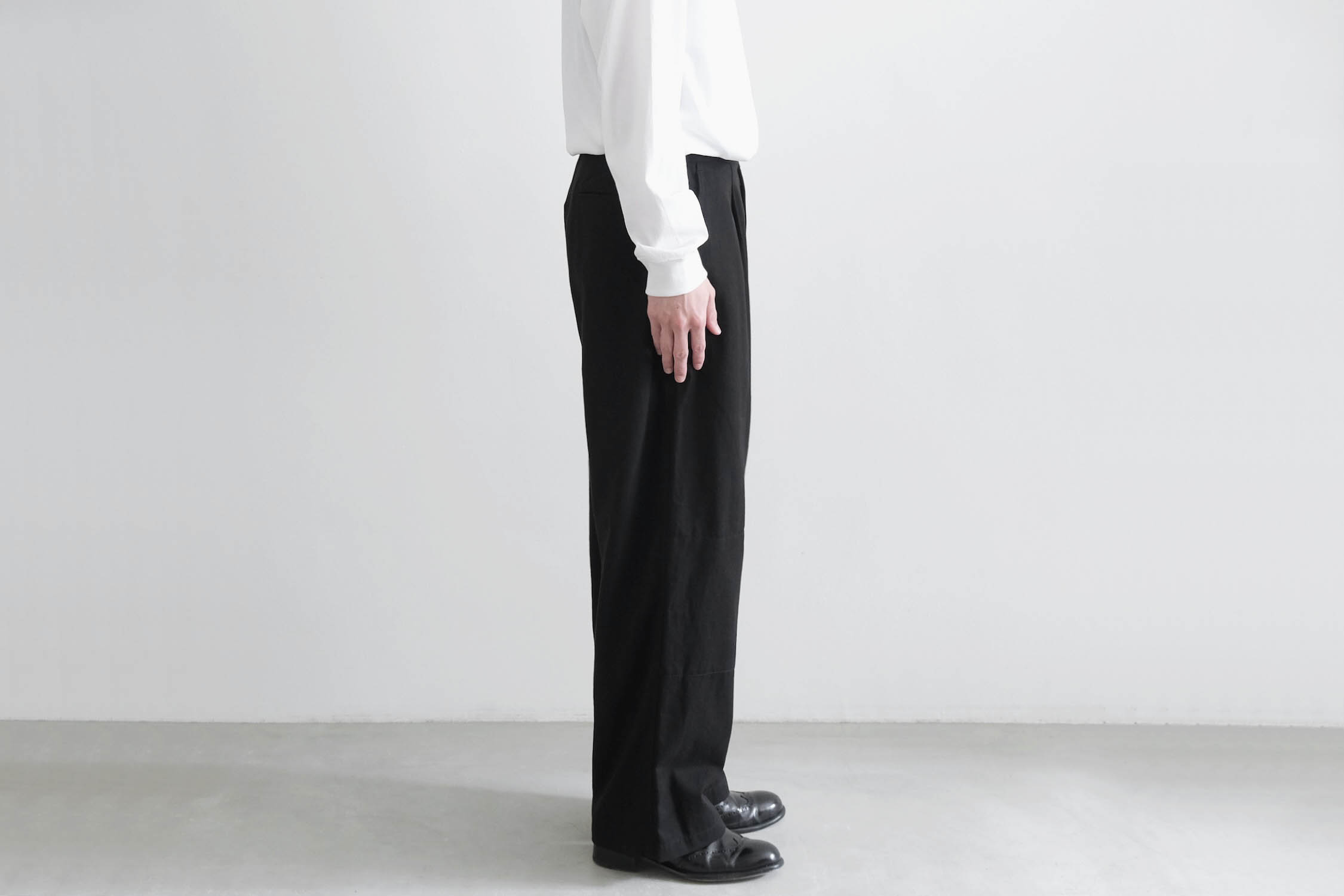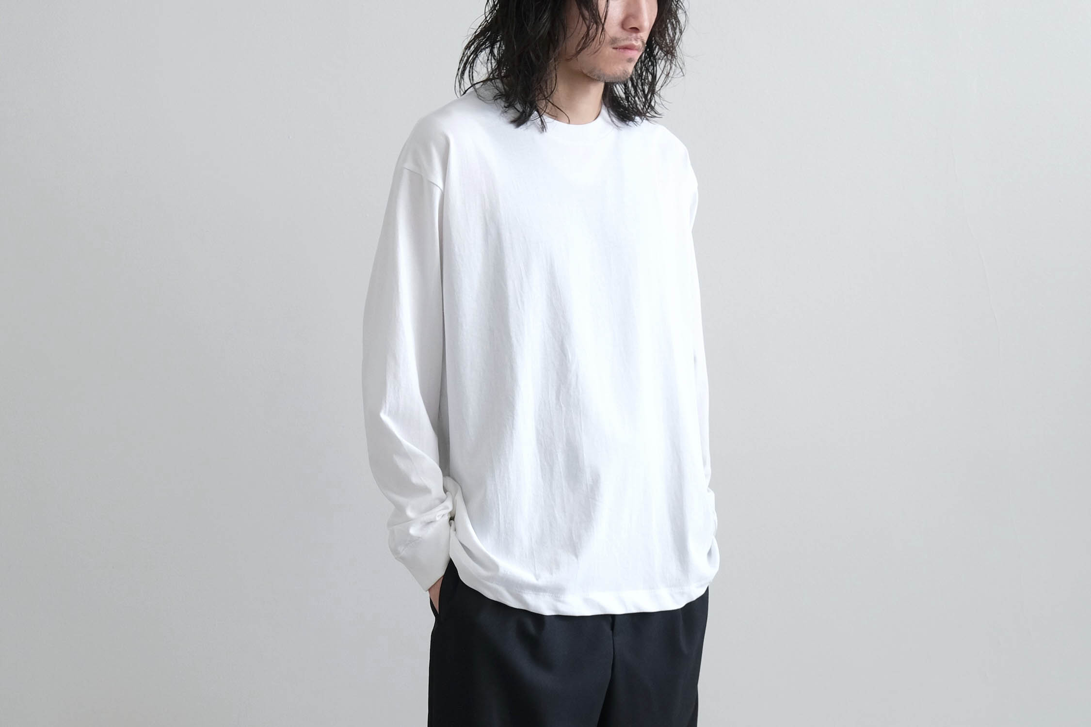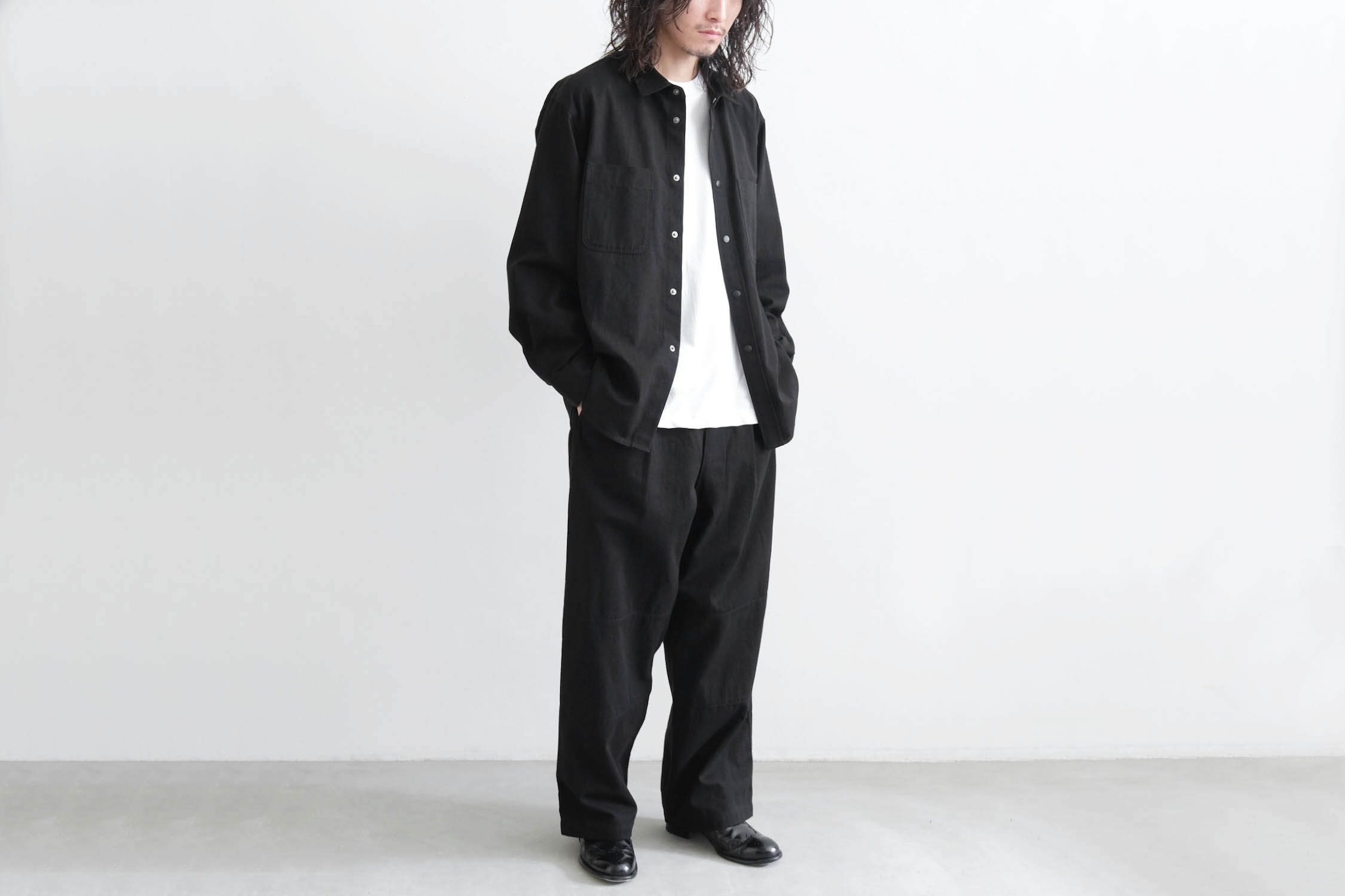 スッキリとしつつも程良いリラックス感あるシルエットで、シャツからニットまで様々なインナーに対応する一着。