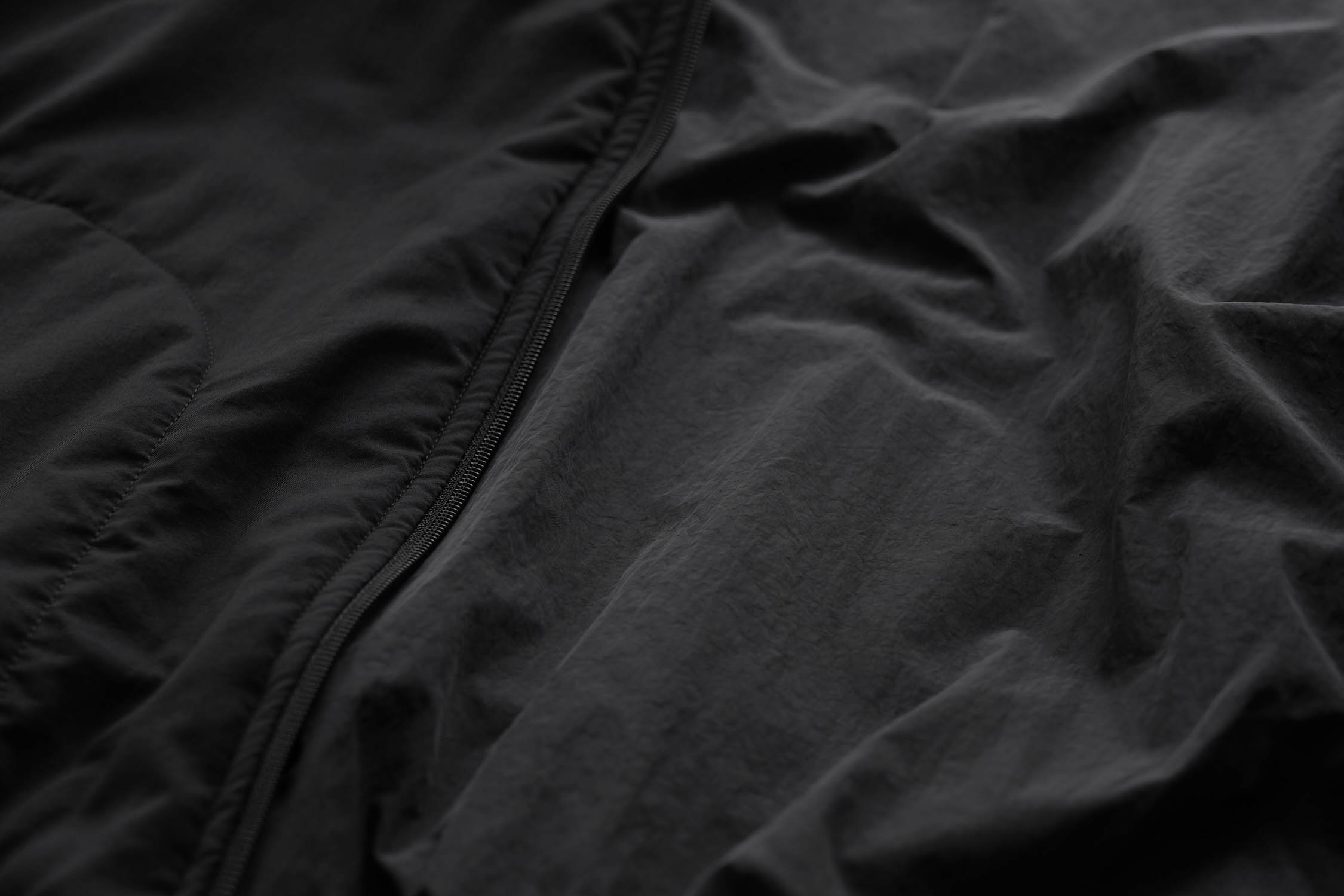 シェルには緻密な設計でやや甘めに織り上げたナイロンタフタ素材を使用。