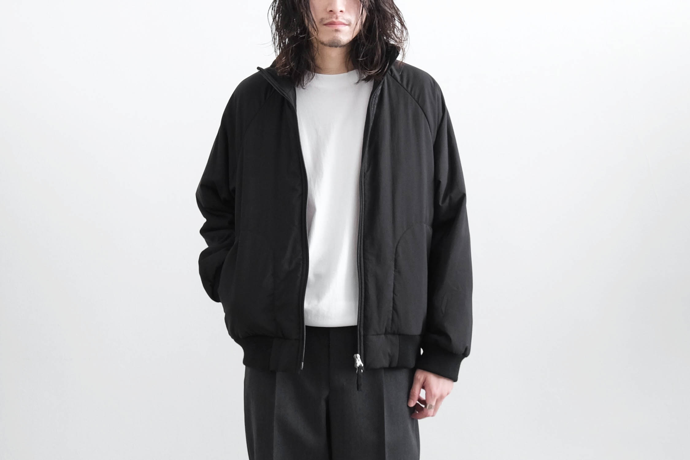 ATON - MAT AIRLY NYLON WOOL PADDED STAND JACKET [BLACK]