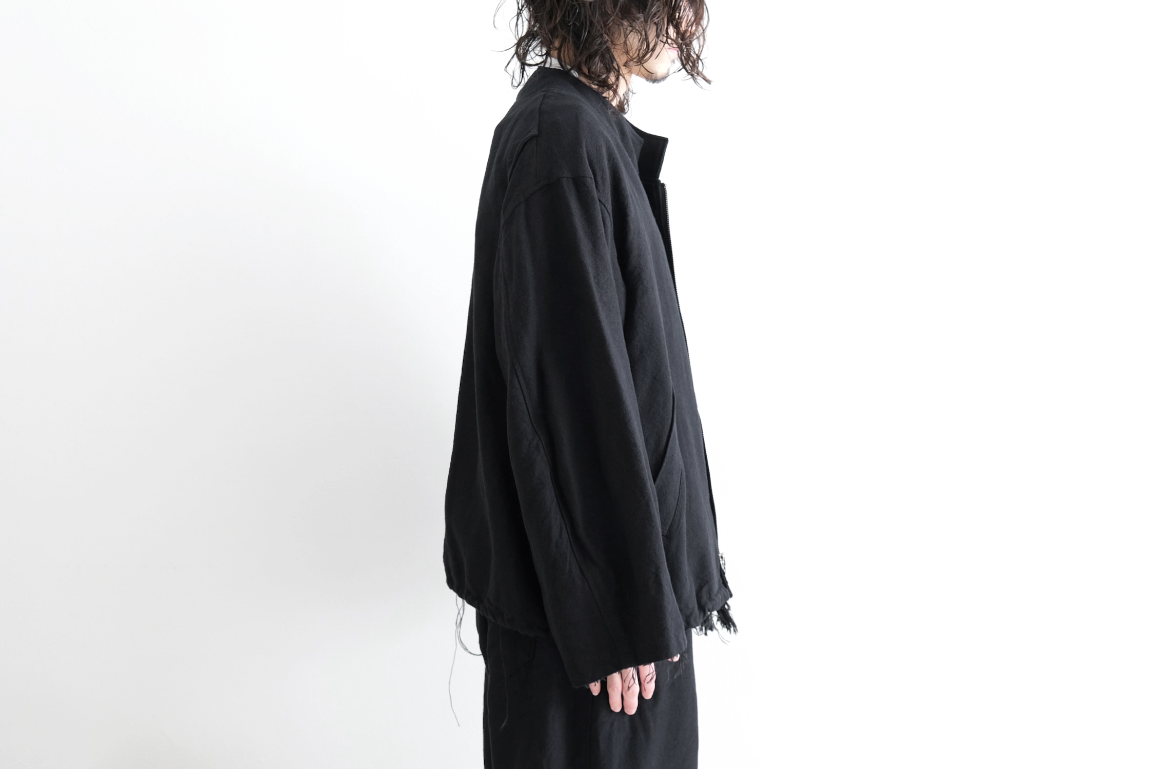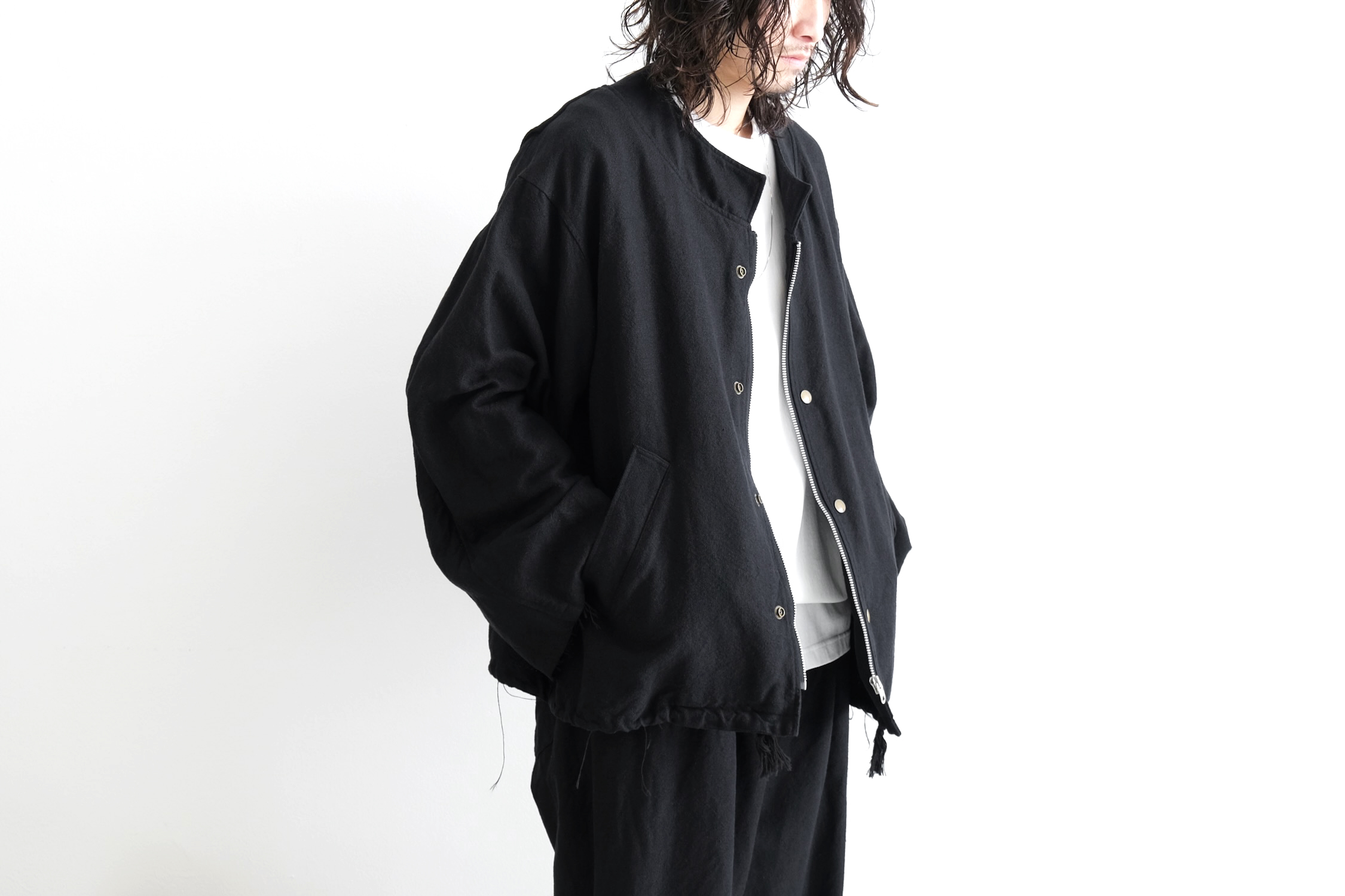 まずはそんな素材で仕立てたスタンドカラーブルゾン。