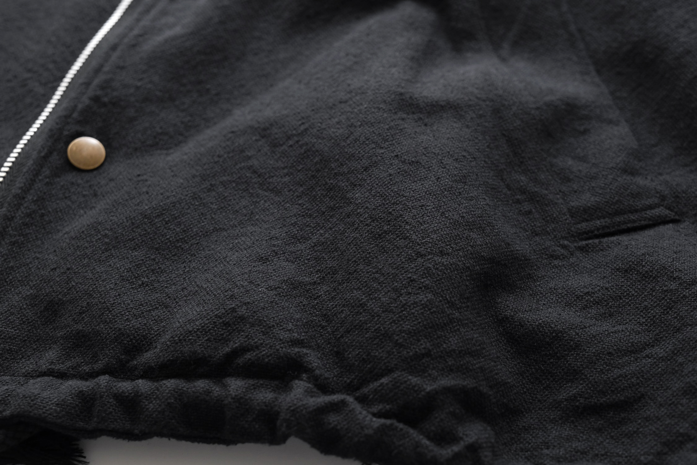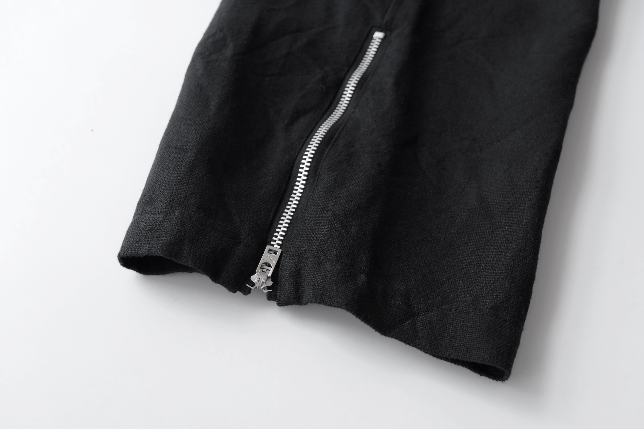 裾サイドジップは前屈みでも開閉しやすい様に若干前寄りに配置。