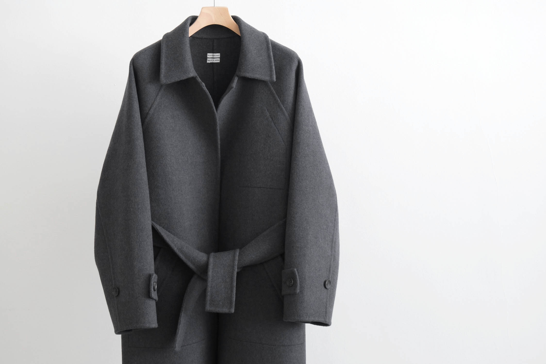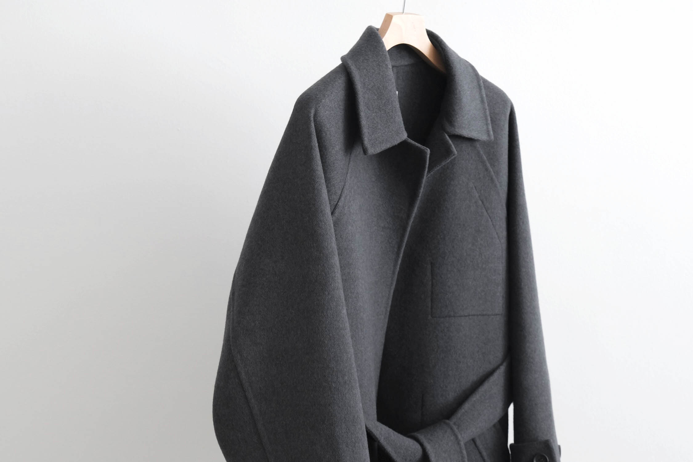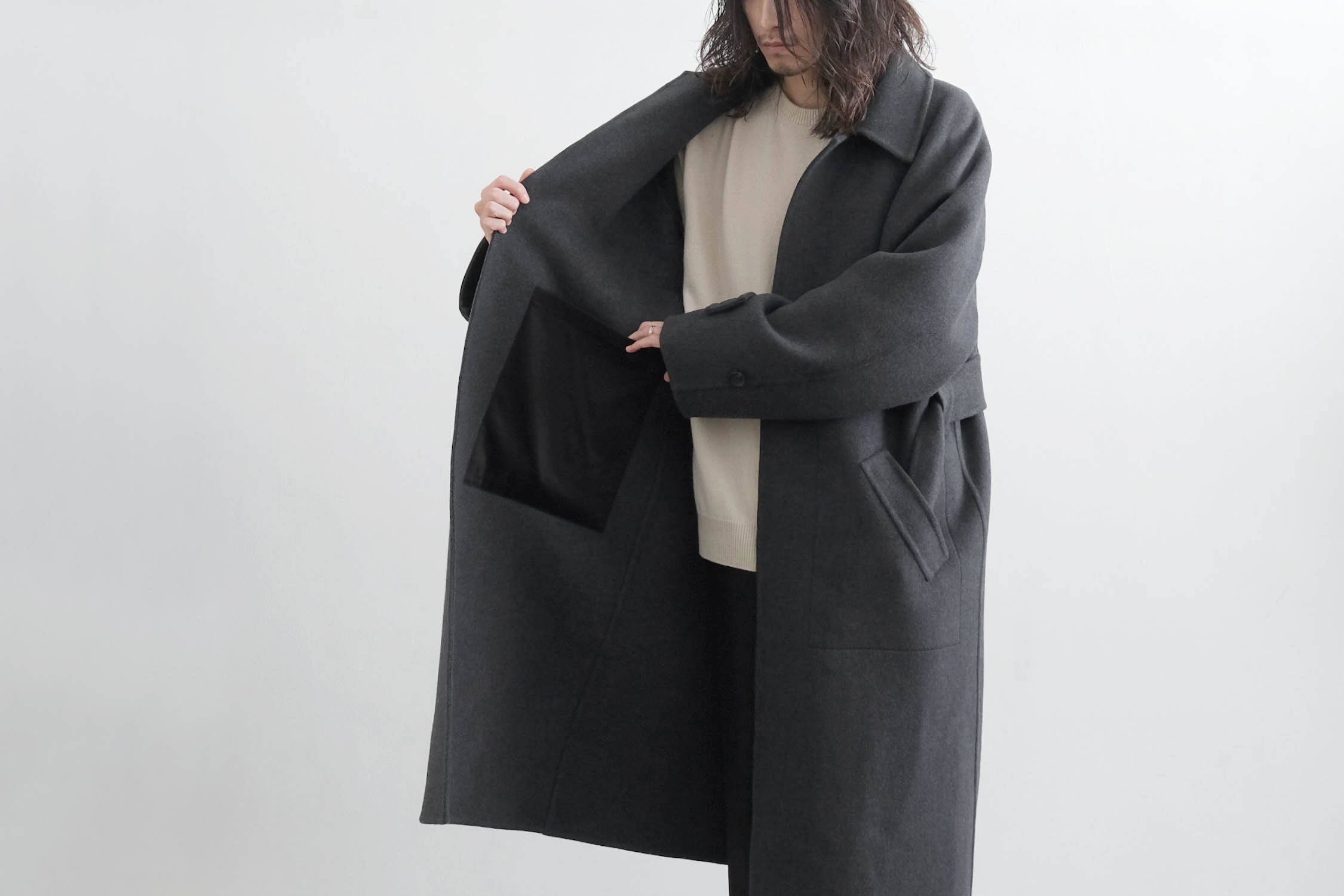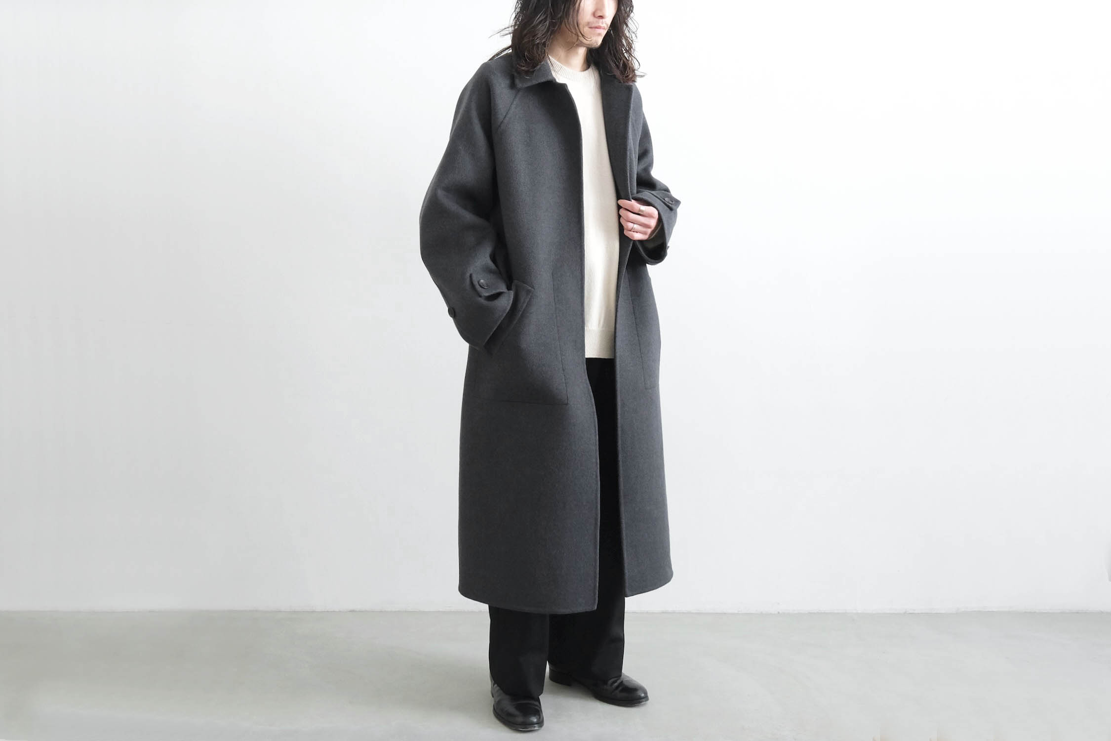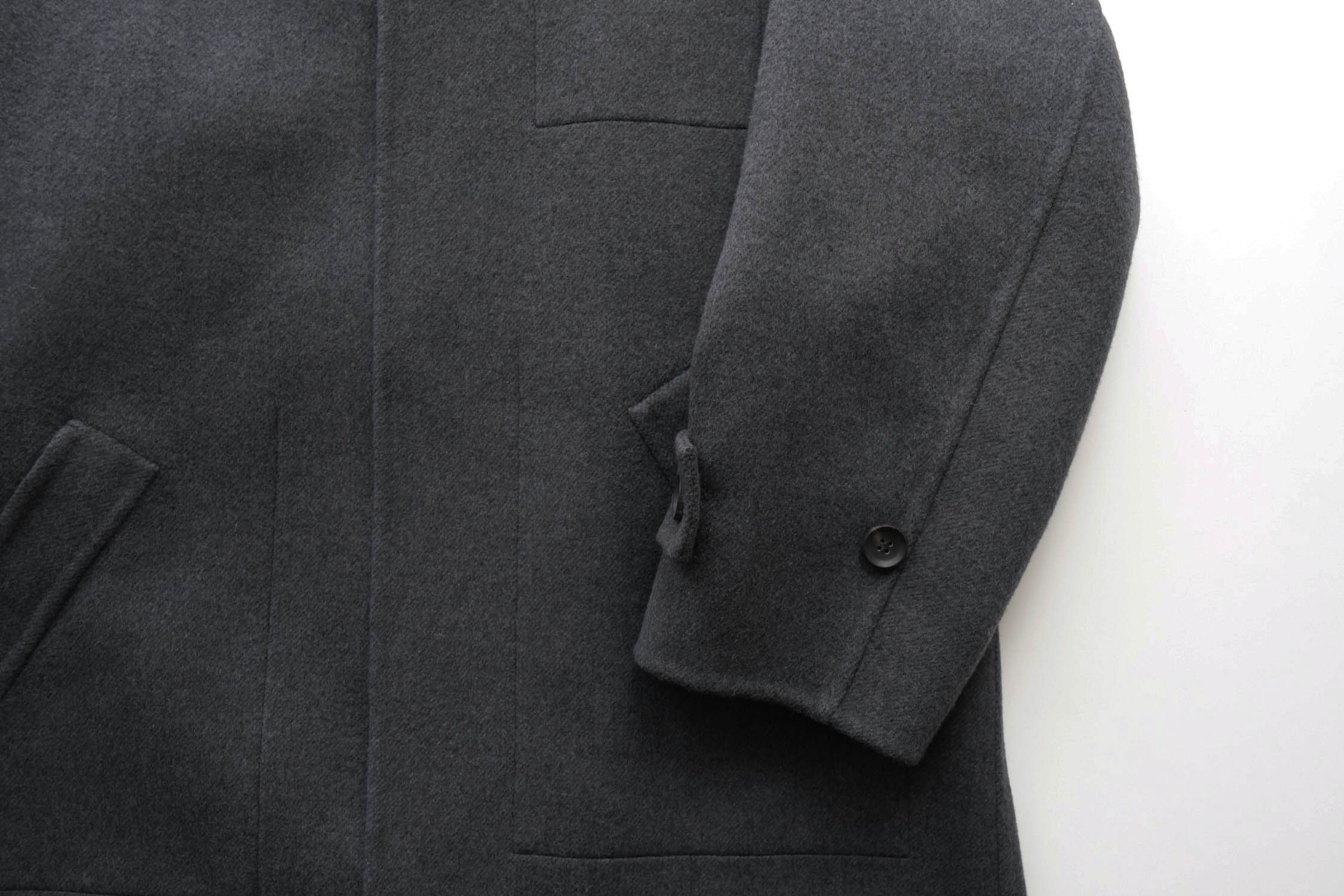 ウールダブルフェイス素材をリバー縫製で仕立てたバルカラーコート。