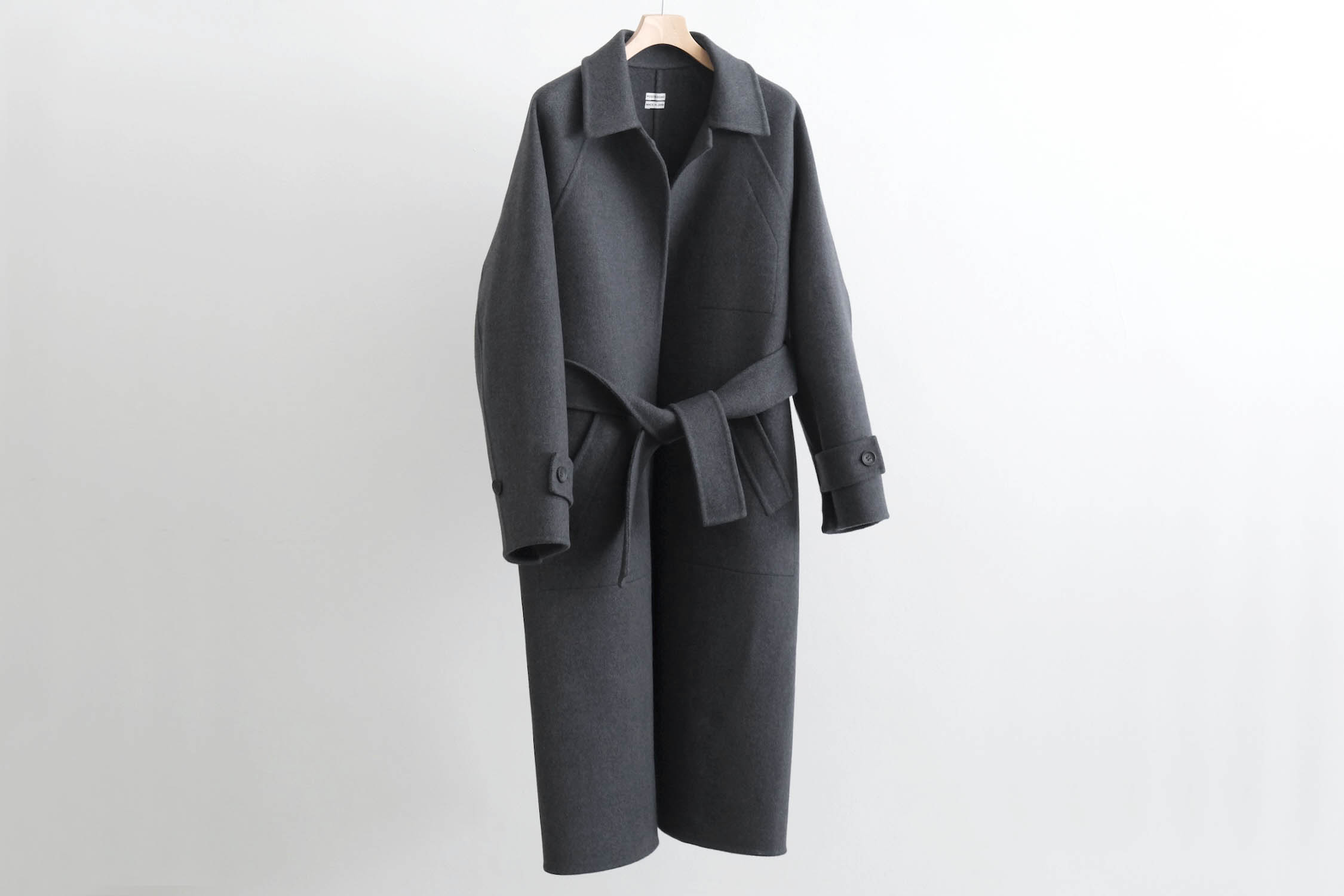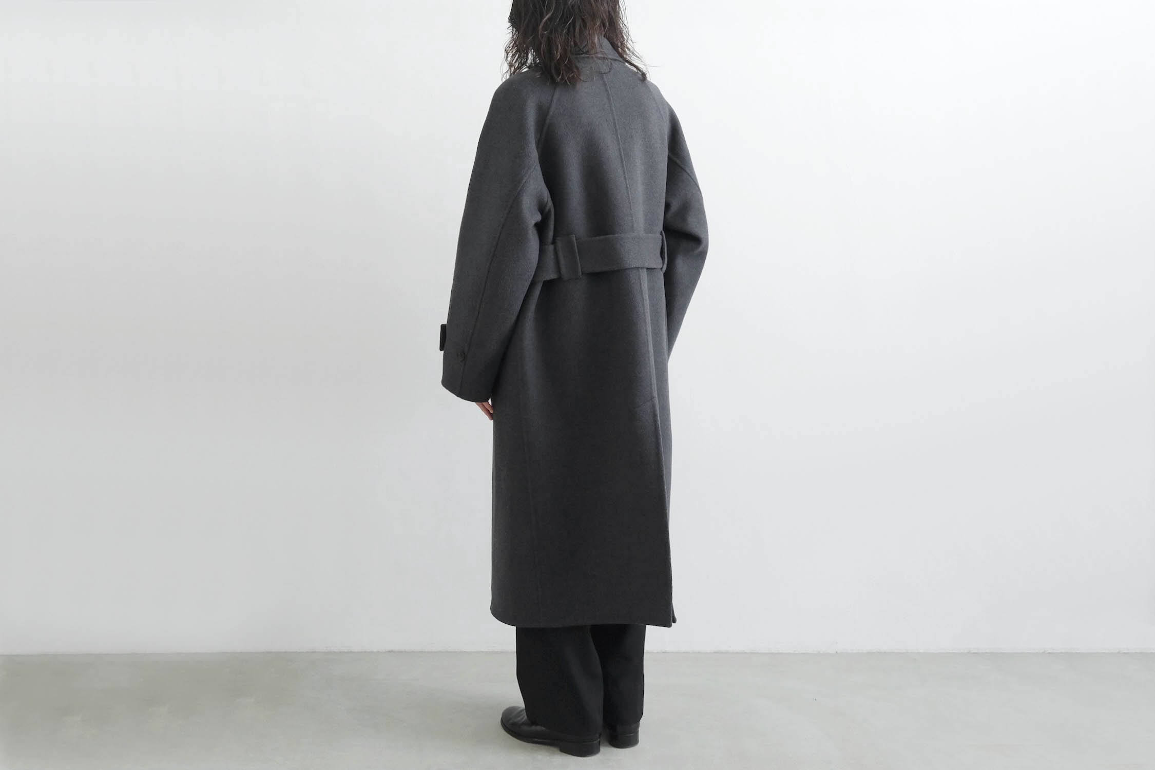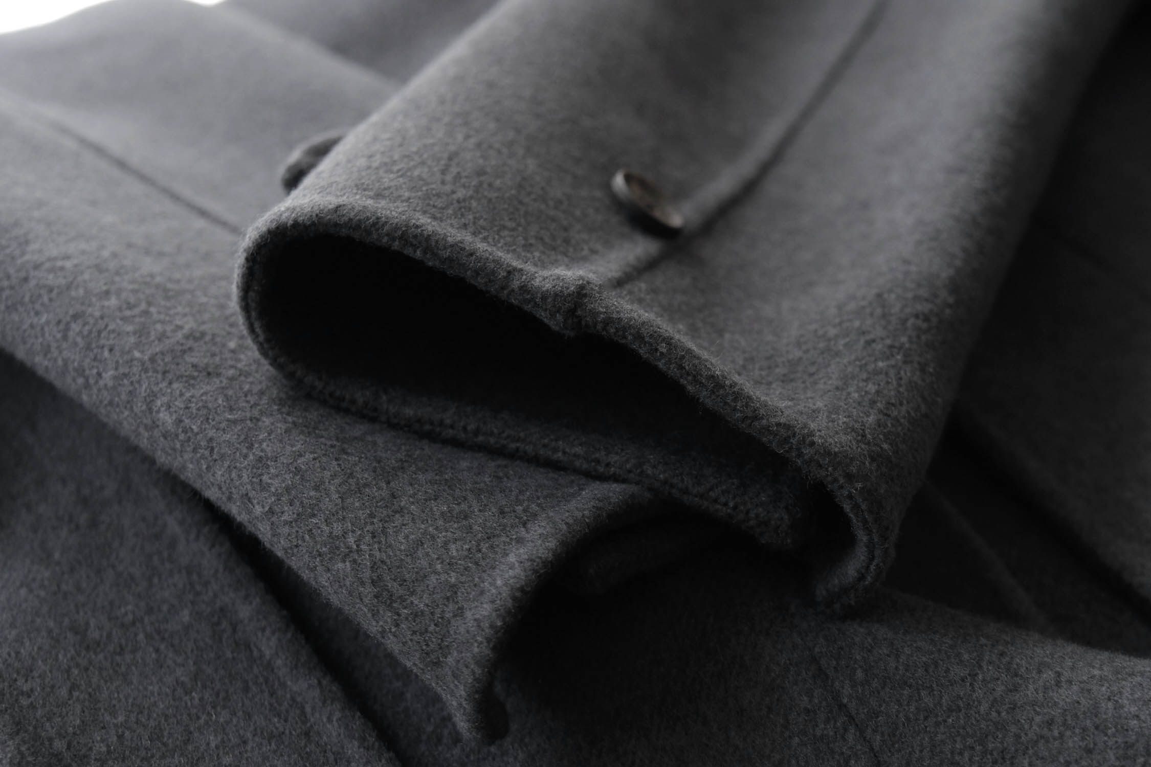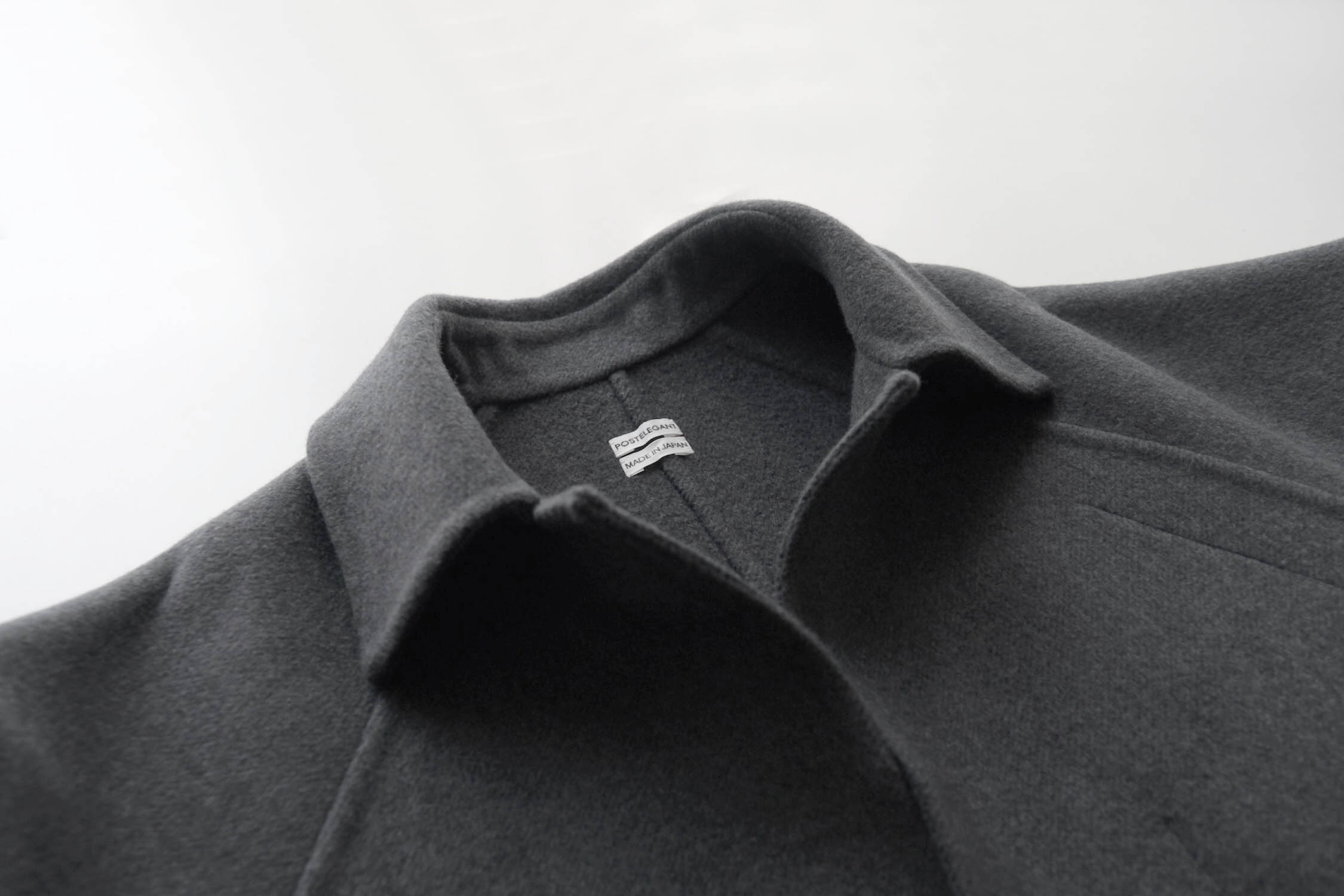 ウールダブルフェイス素材をリバー縫製で仕立てたバルカラーコート。