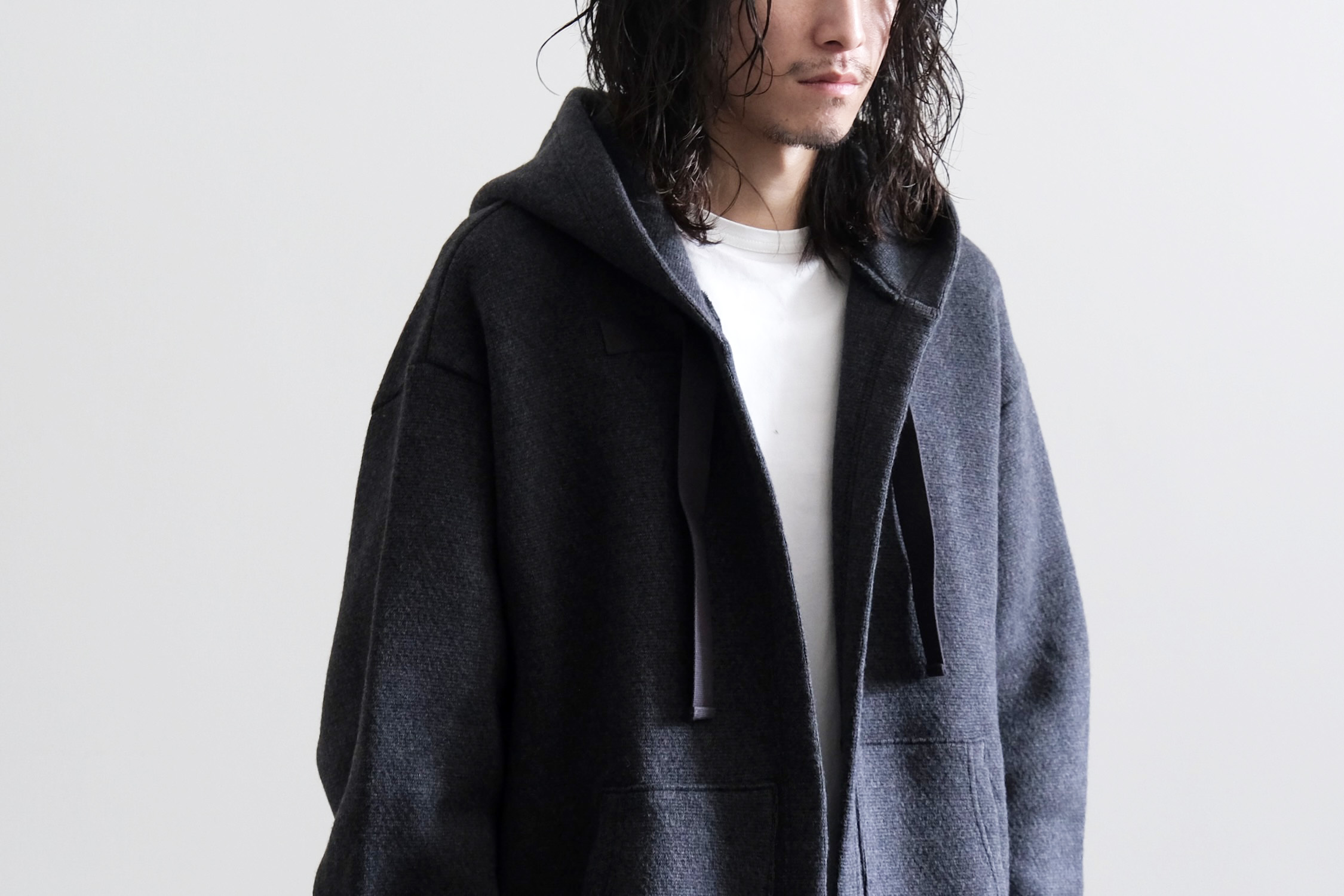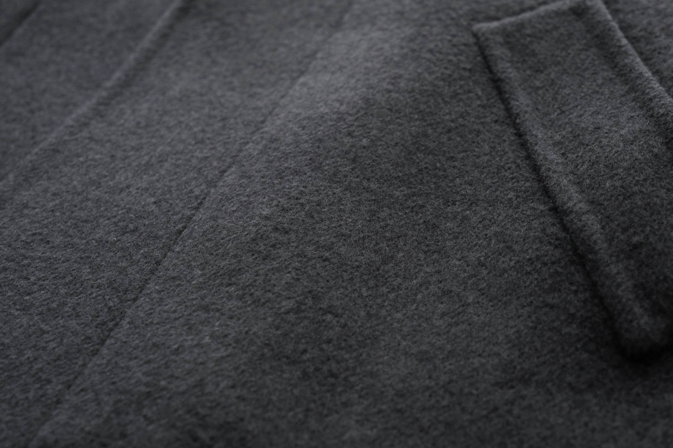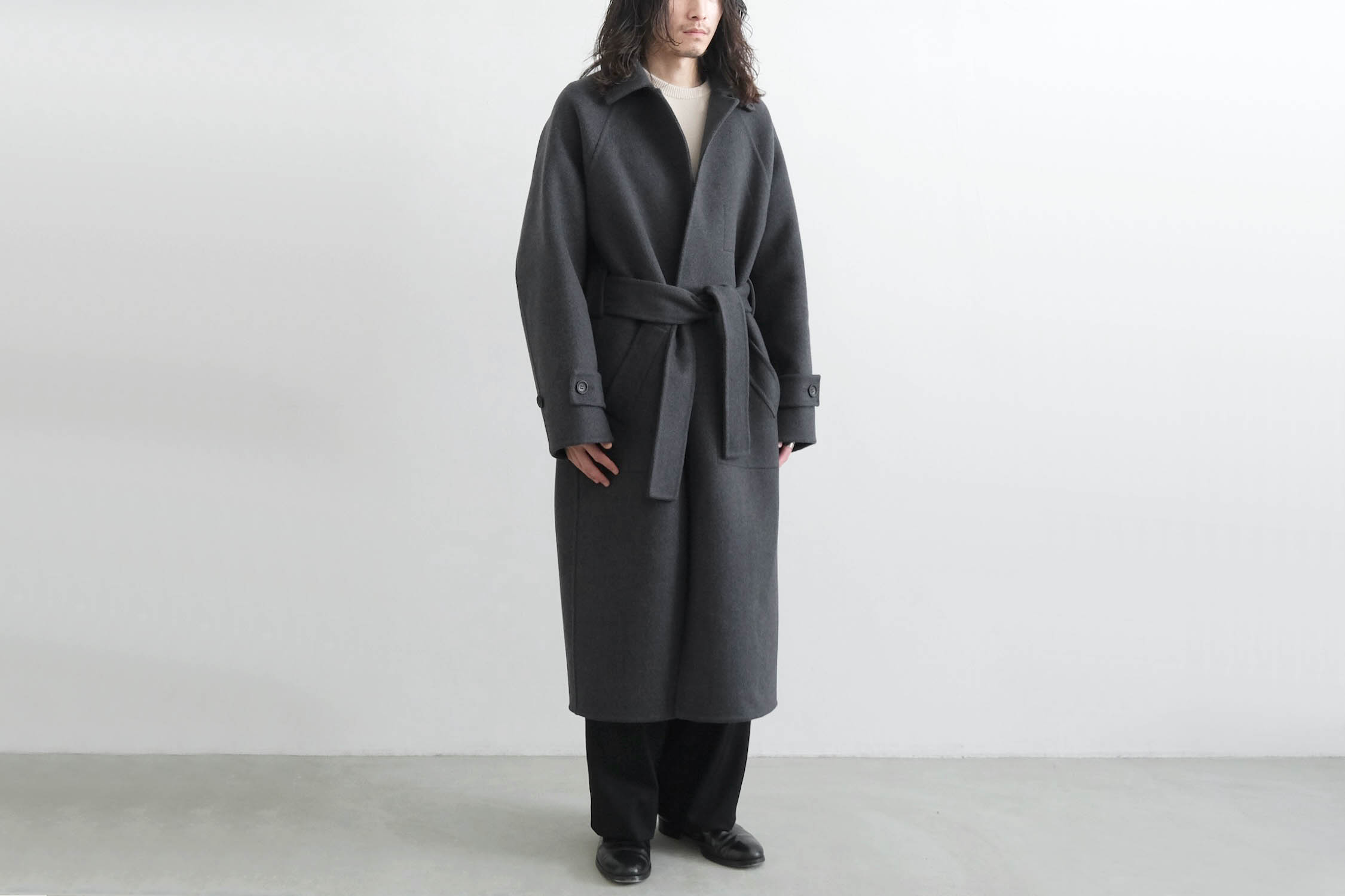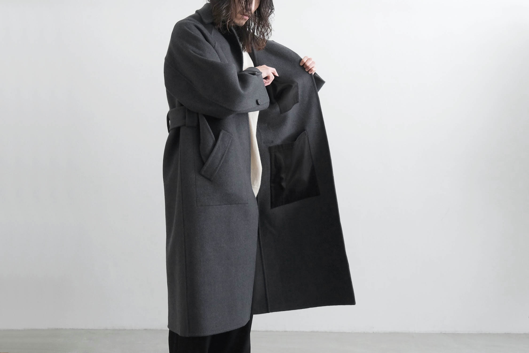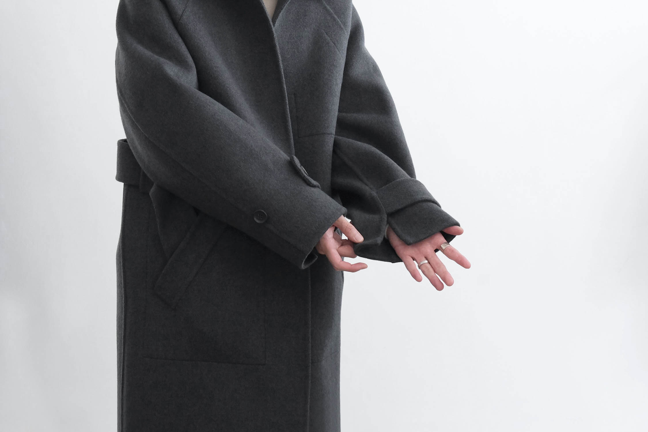 ウールダブルフェイス素材をリバー縫製で仕立てたバルカラーコート。