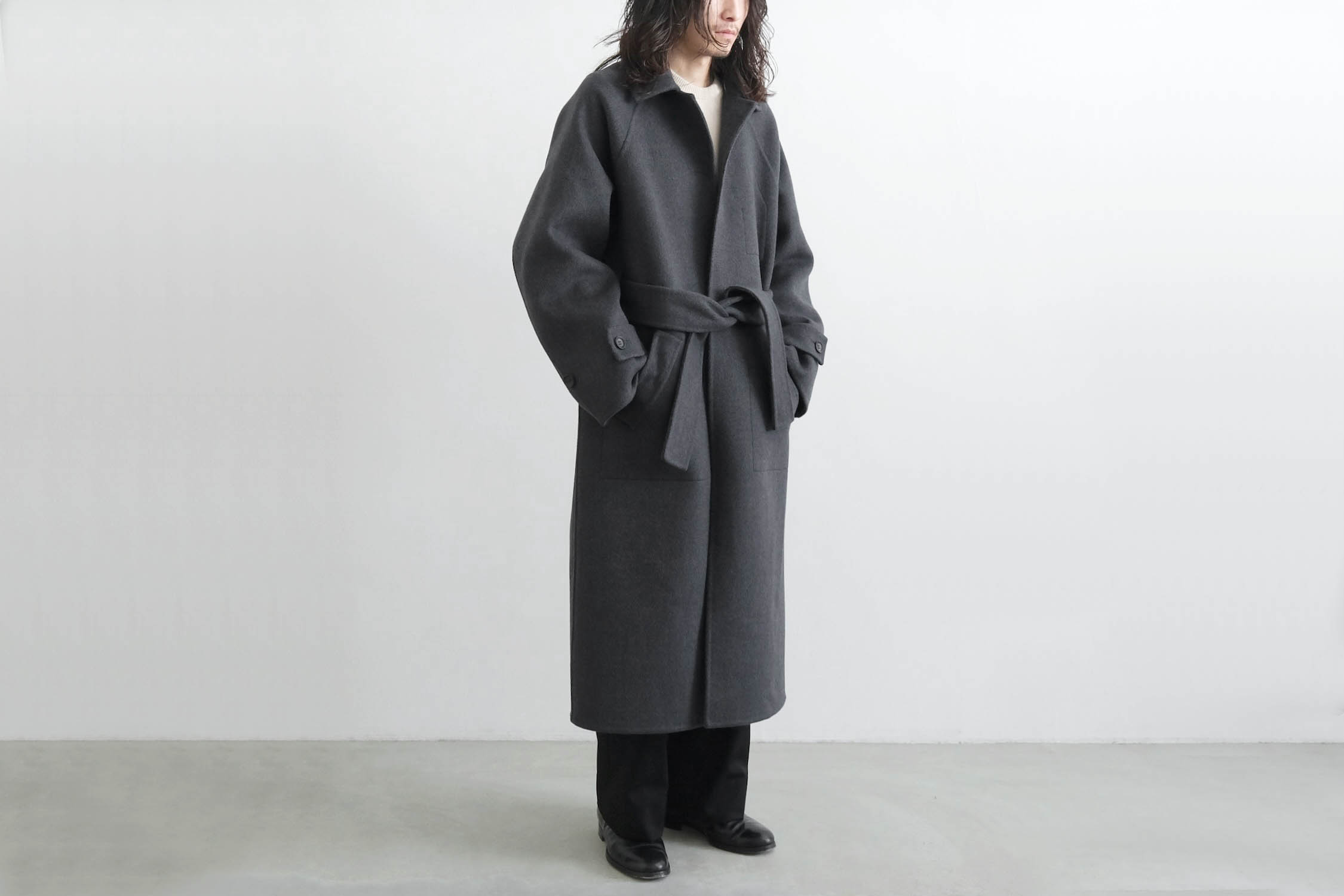 POSTELEGANT - EXTRA FINE WOOL REVER RAGLAN COAT [HEATHER GRAY]