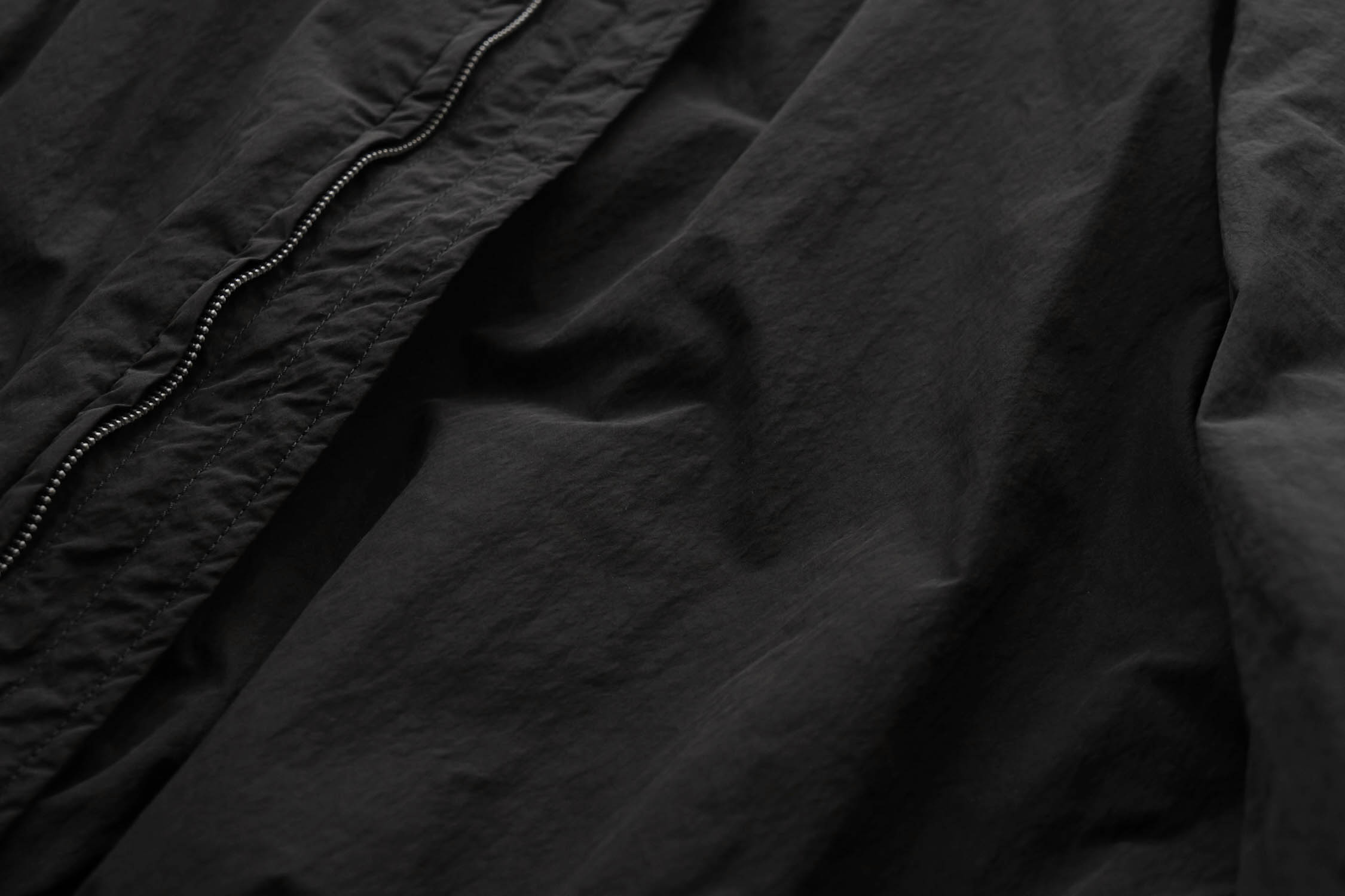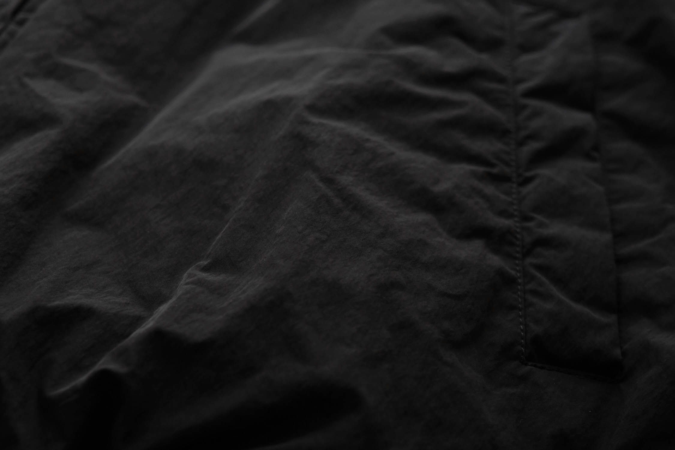そして、スタンドカラーでの着用を可能にする身頃右内側に配したミニマルなチンストラップなど…。