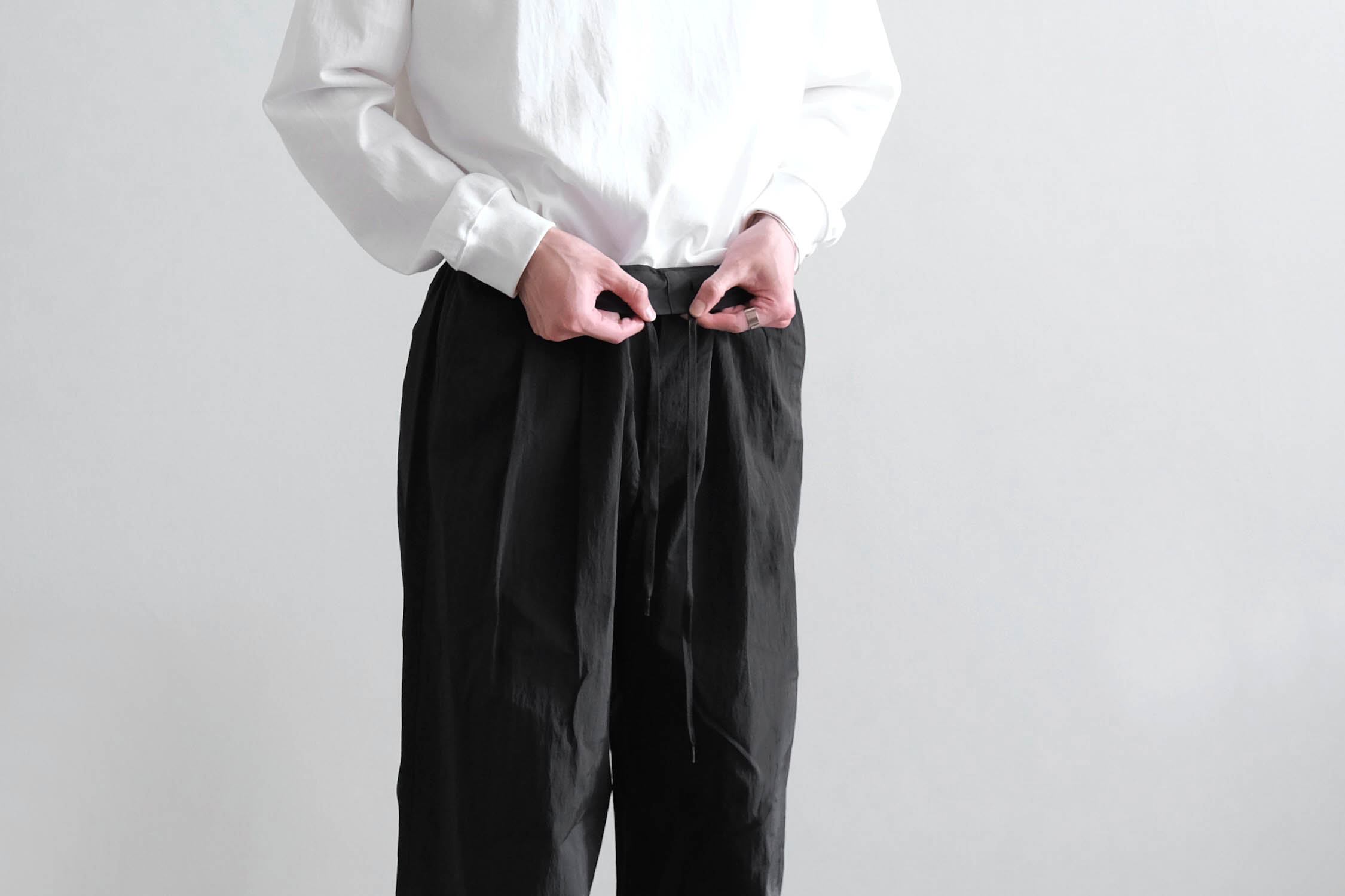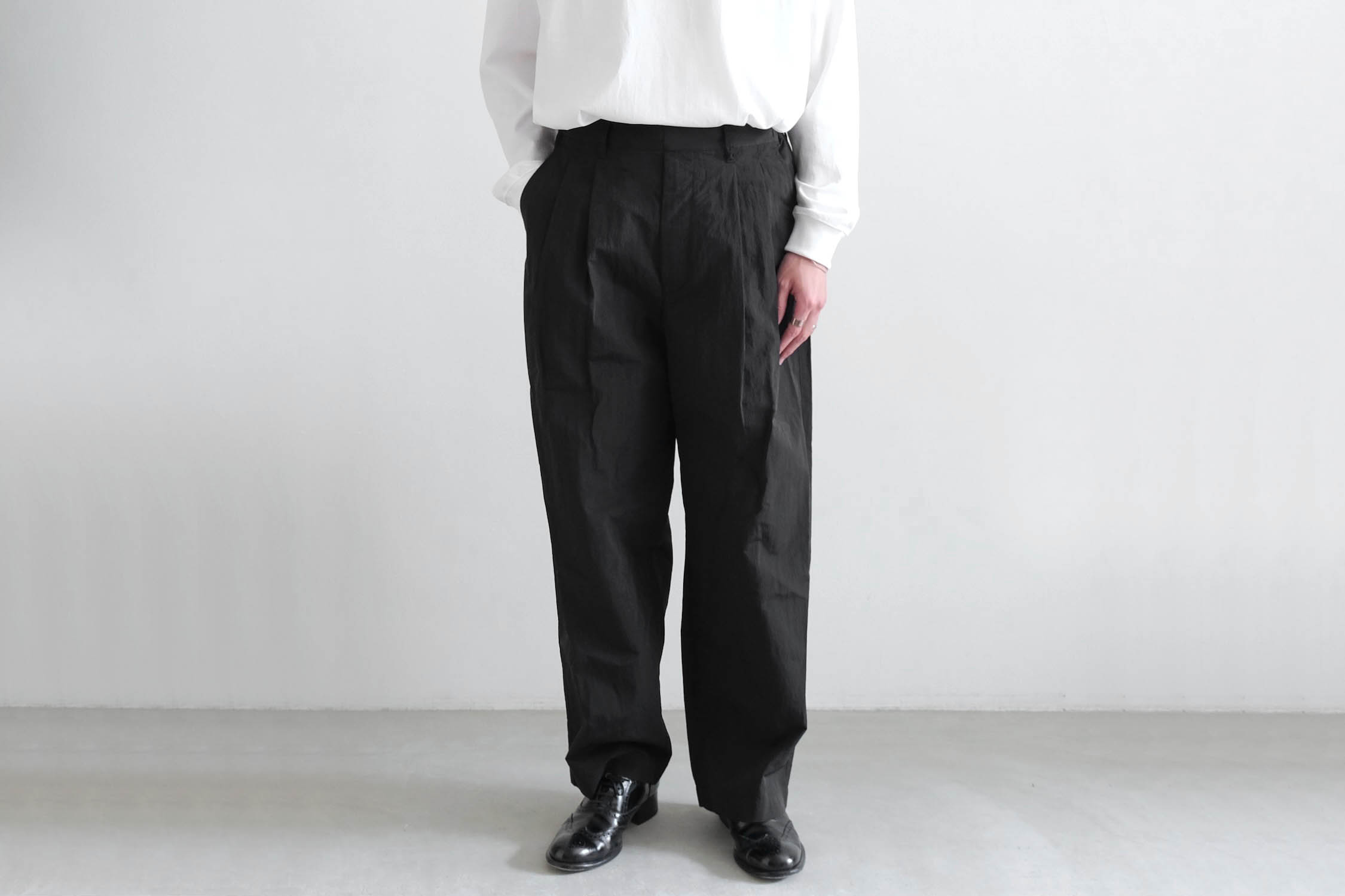 たっぷりと分量を取った素材感が活きるオーバーサイズシルエットにまとめています。