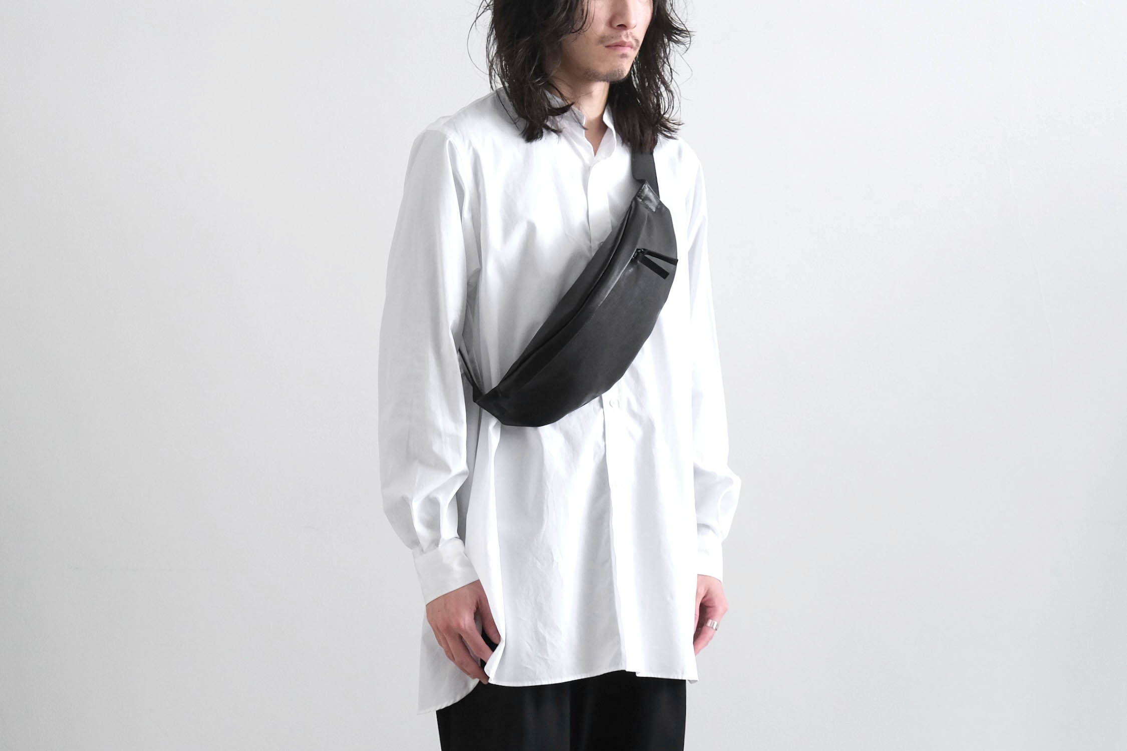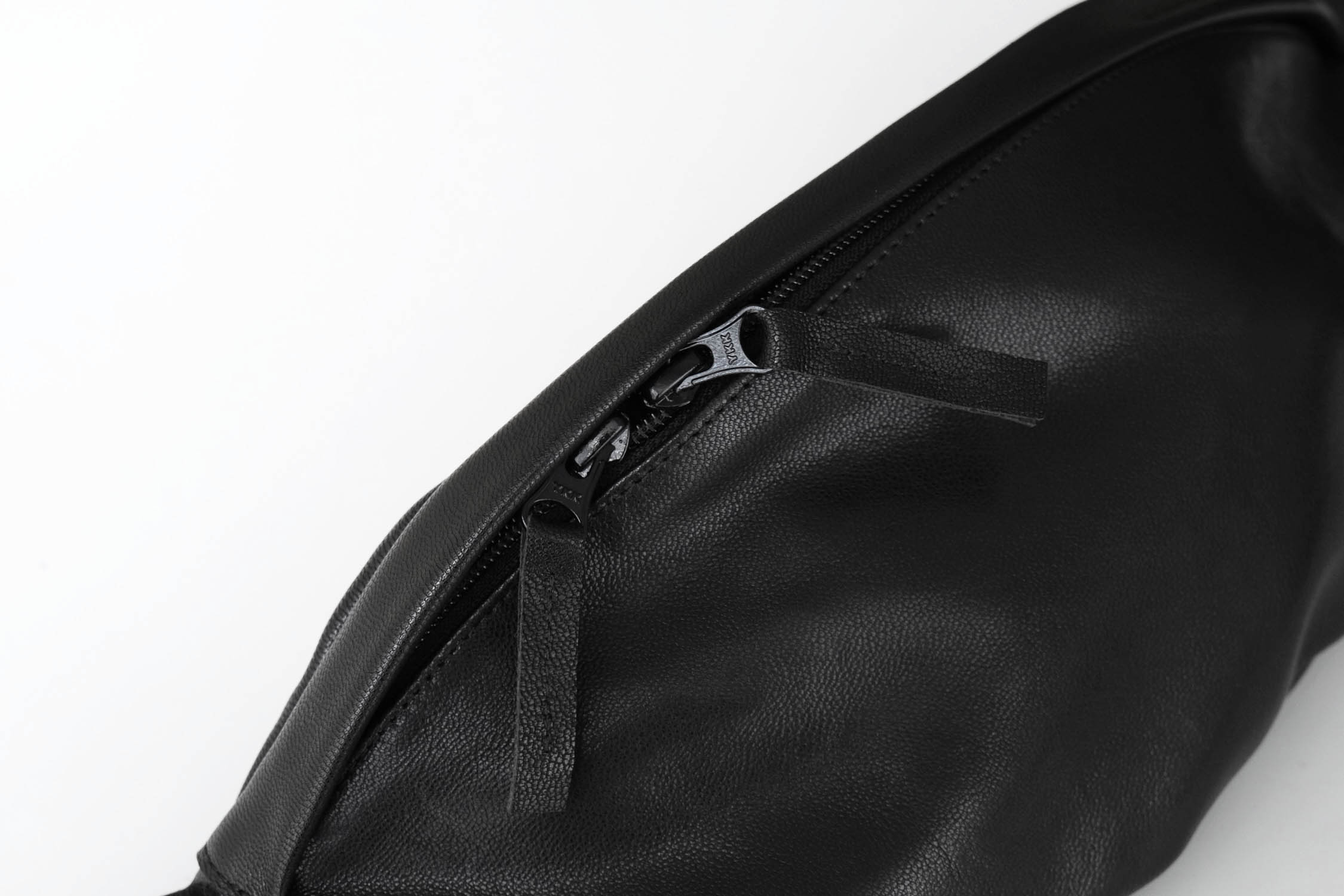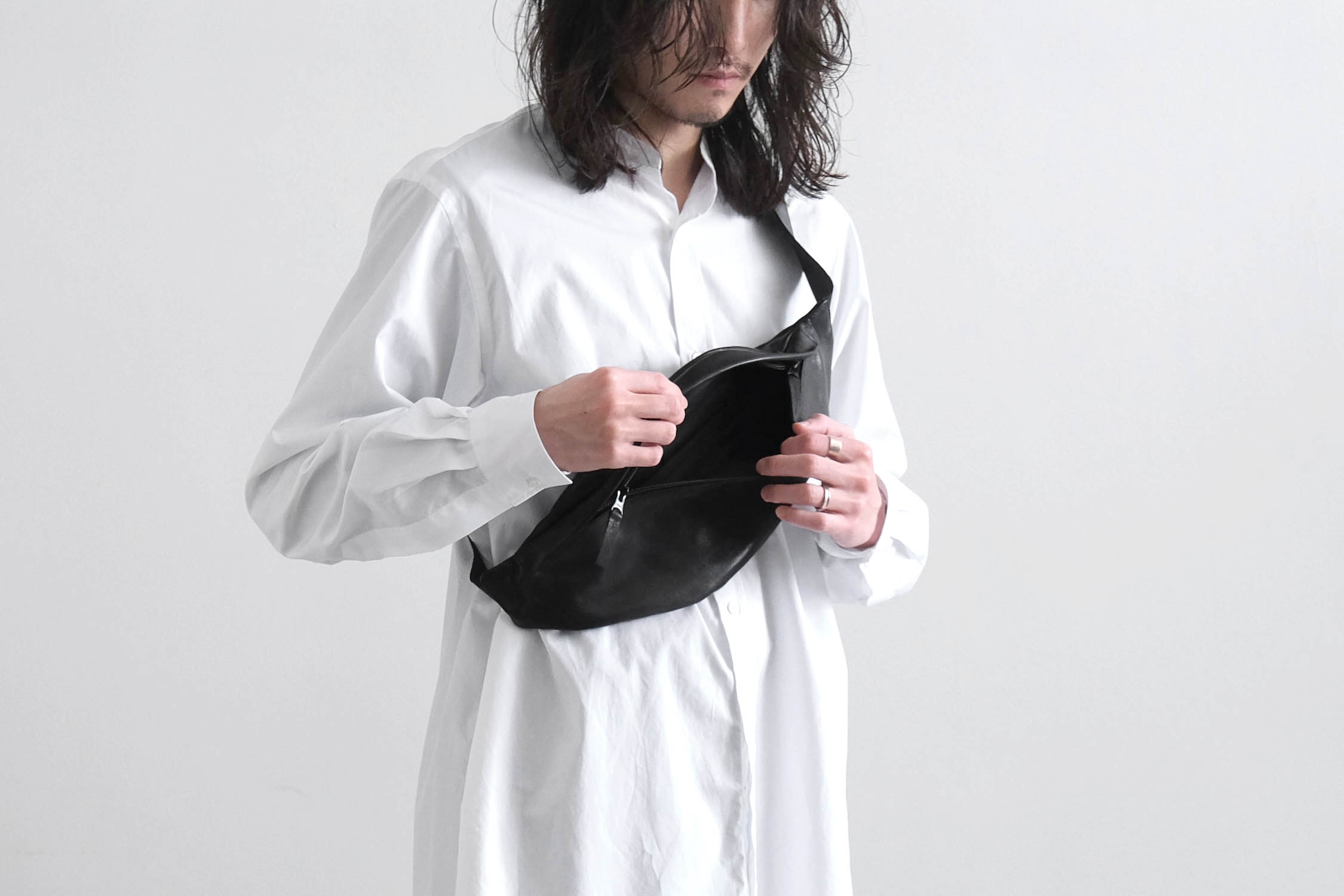 一般的なボディバッグとは一線を画す重厚且つアノニマスなルックスは、着用者のスタイルを選びません。