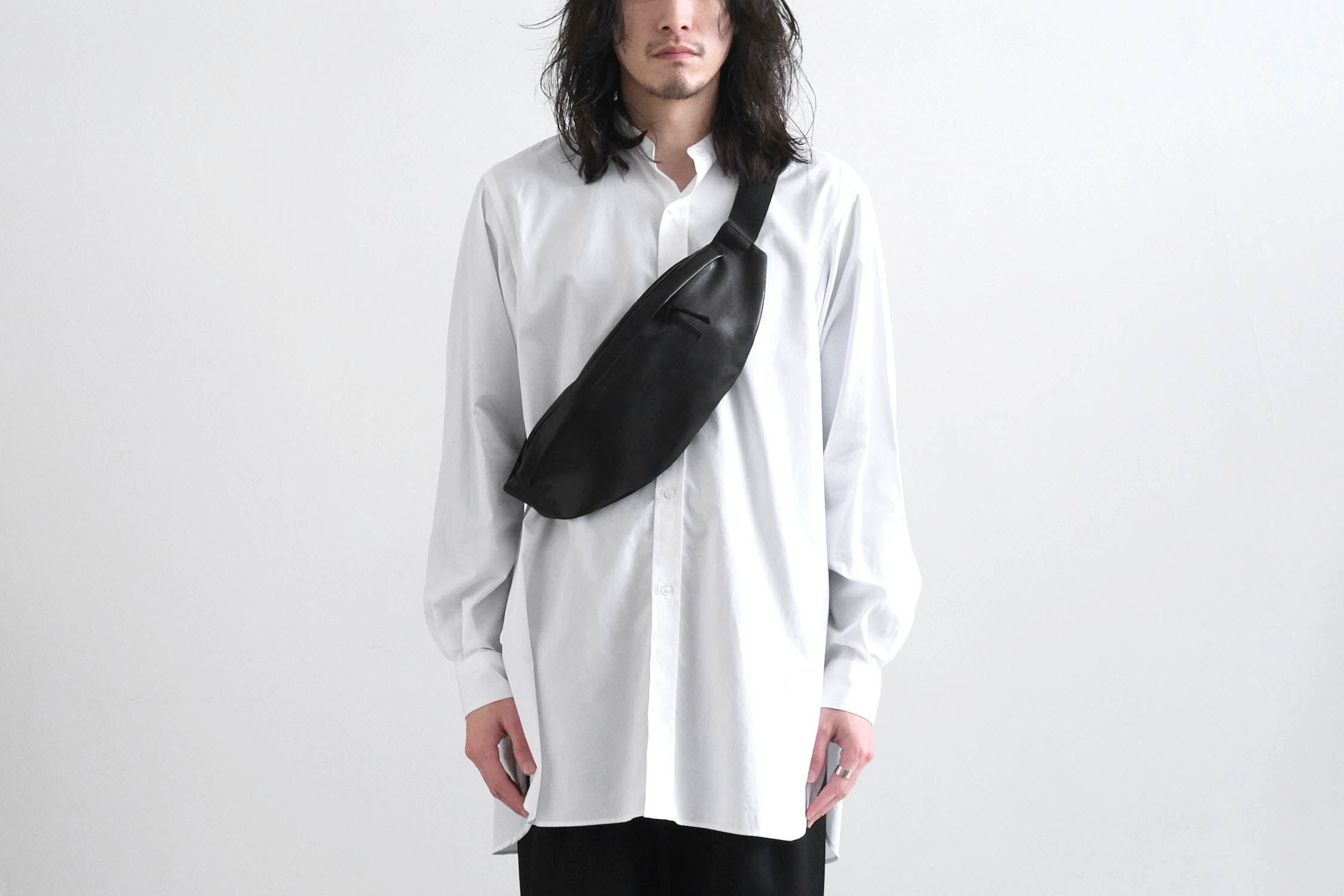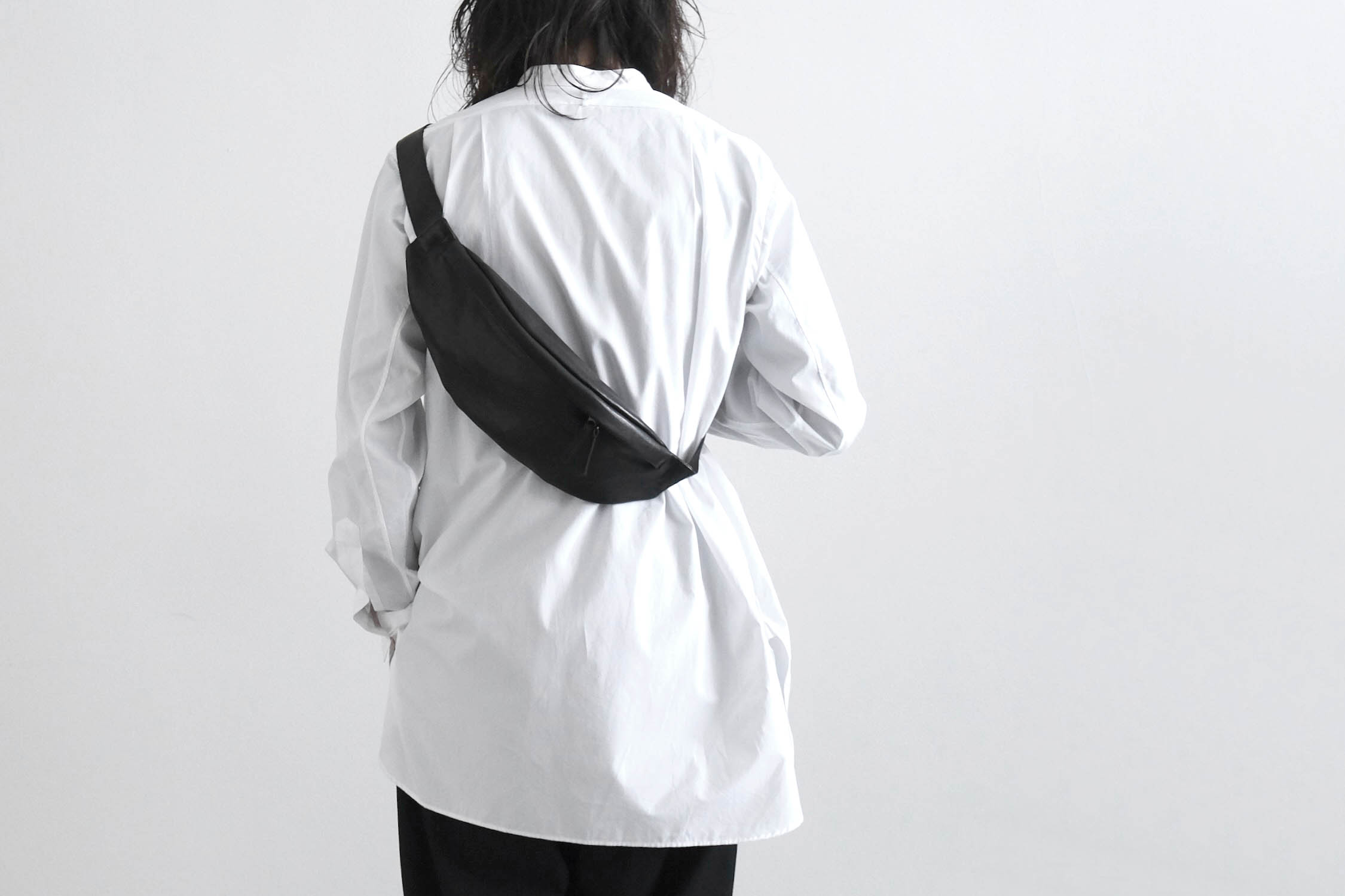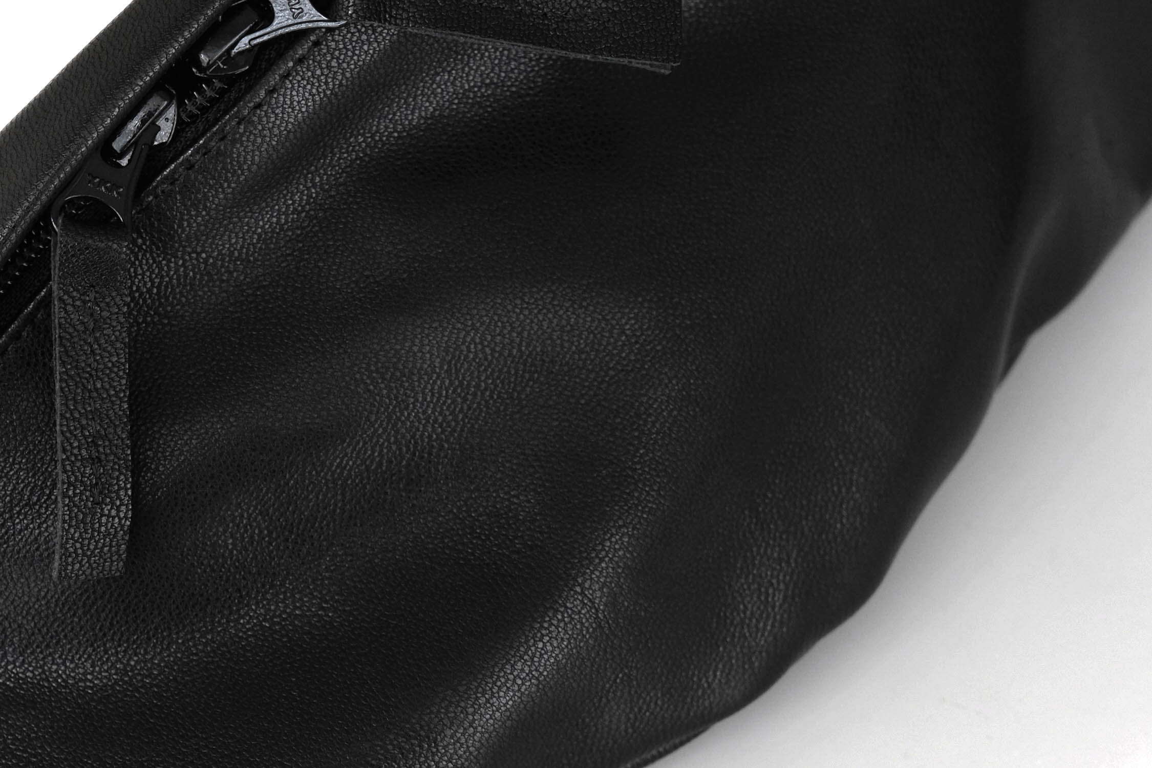 一般的なボディバッグとは一線を画す重厚且つアノニマスなルックスは、着用者のスタイルを選びません。