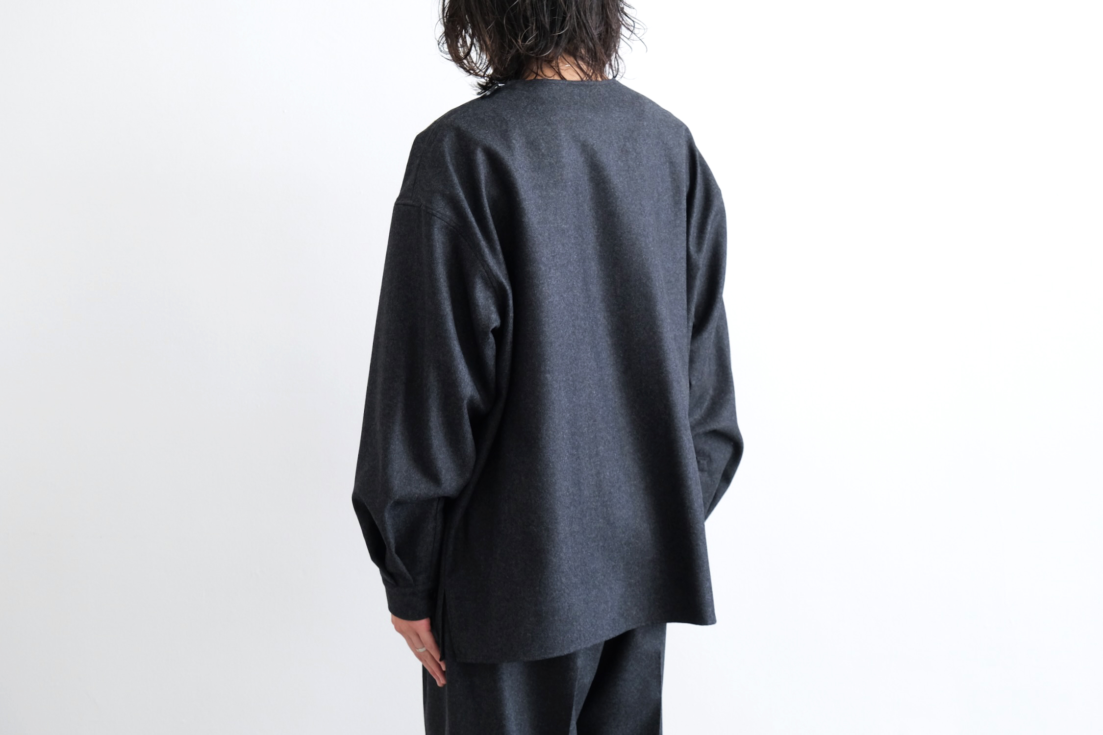THE RERACS - 2/54 COLLEGE FLANNEL THE SIDE ZIP PULLIOVER SHIRT [CHARCOAL GRAY]