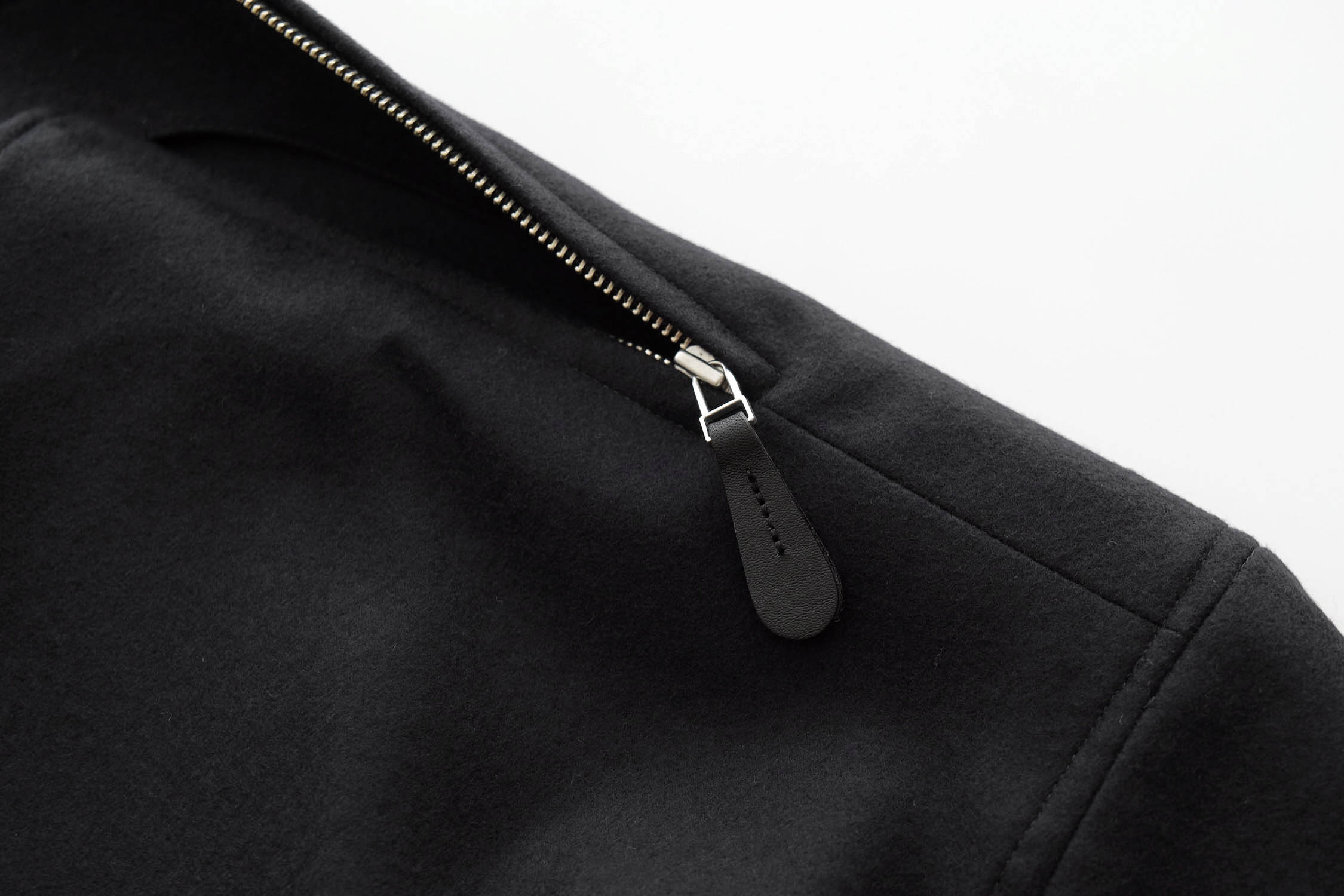 左肩はアイコニックなウォッシャブルレザーの引手付きのZIPを配し、ストレスフリーな着脱が可能。