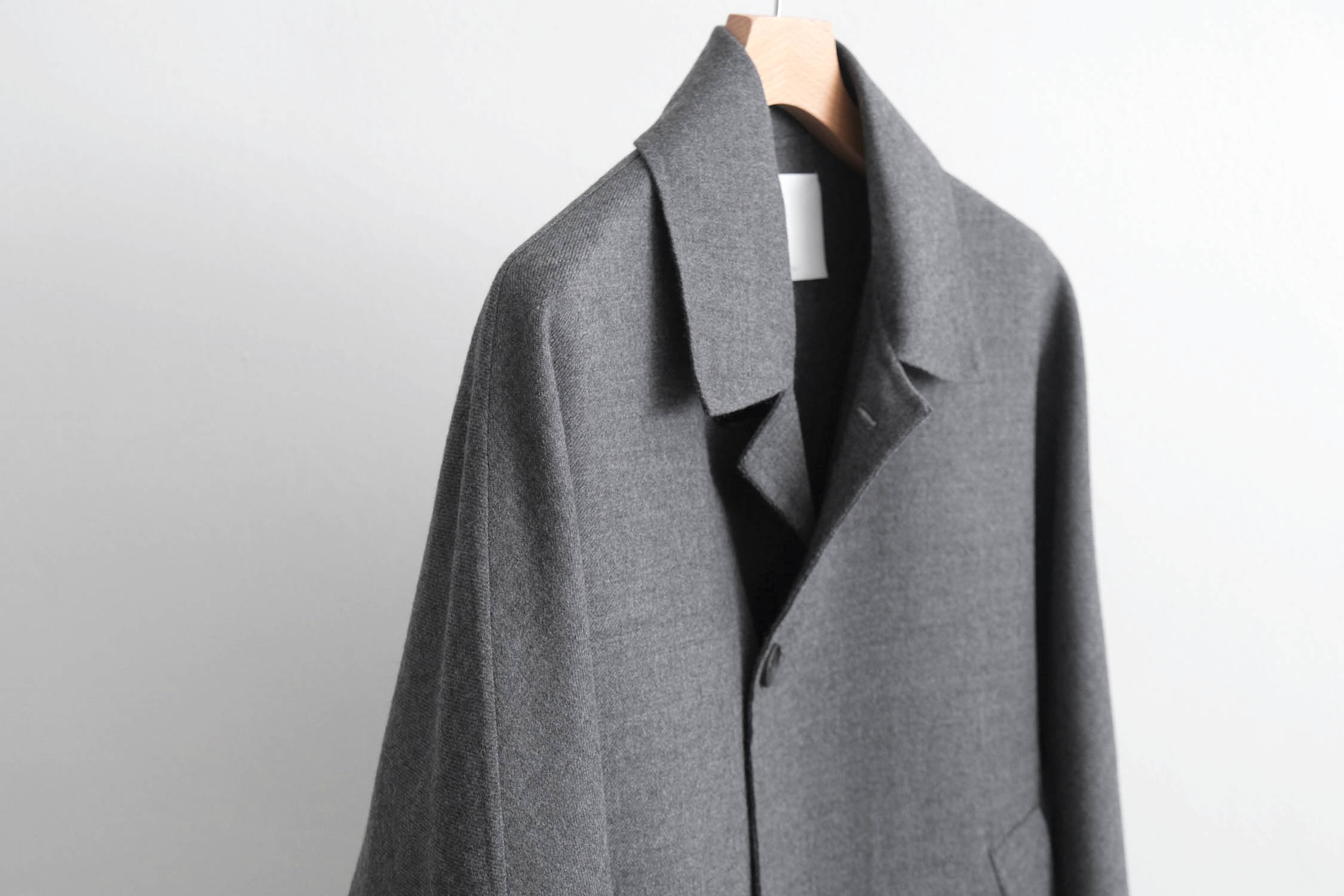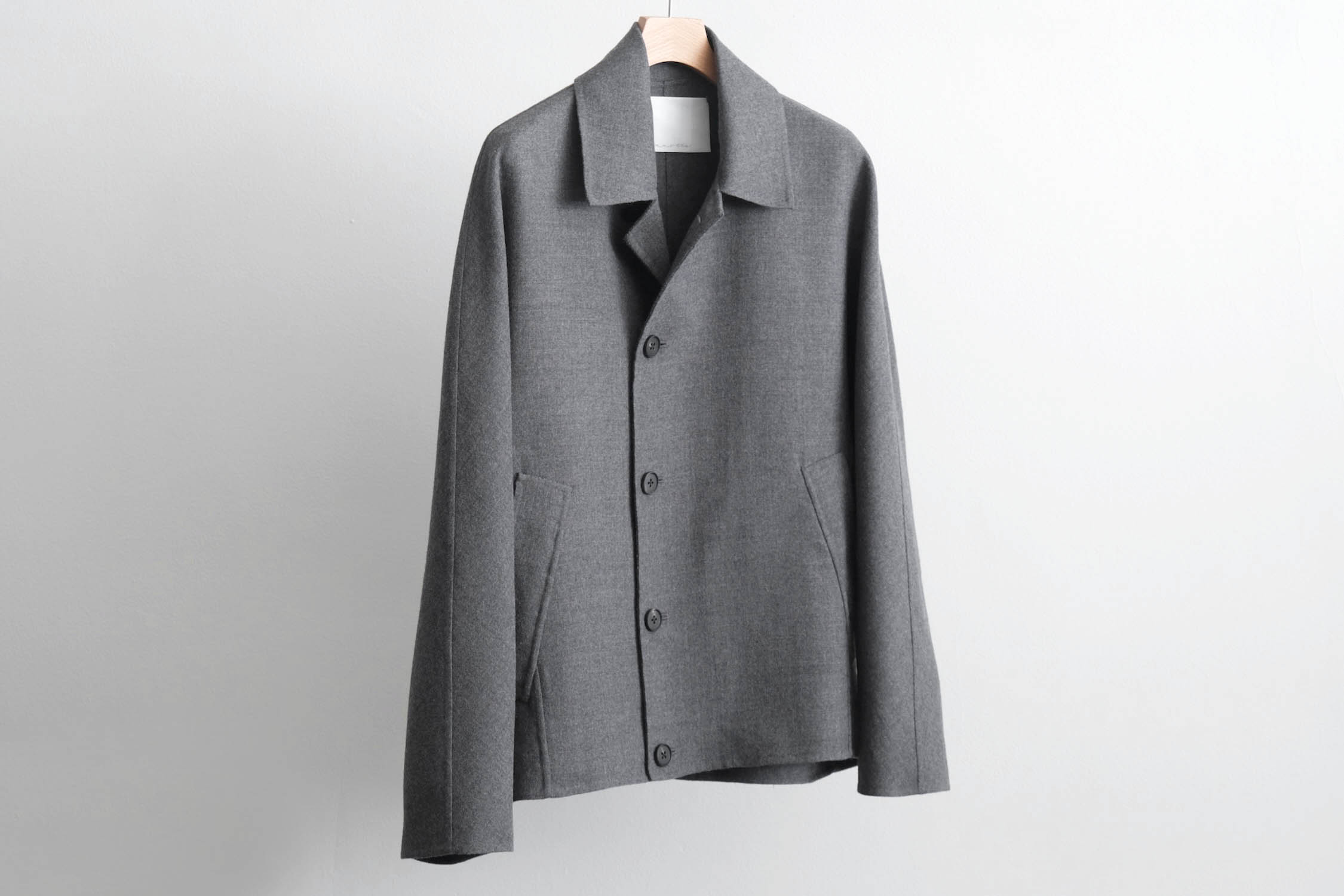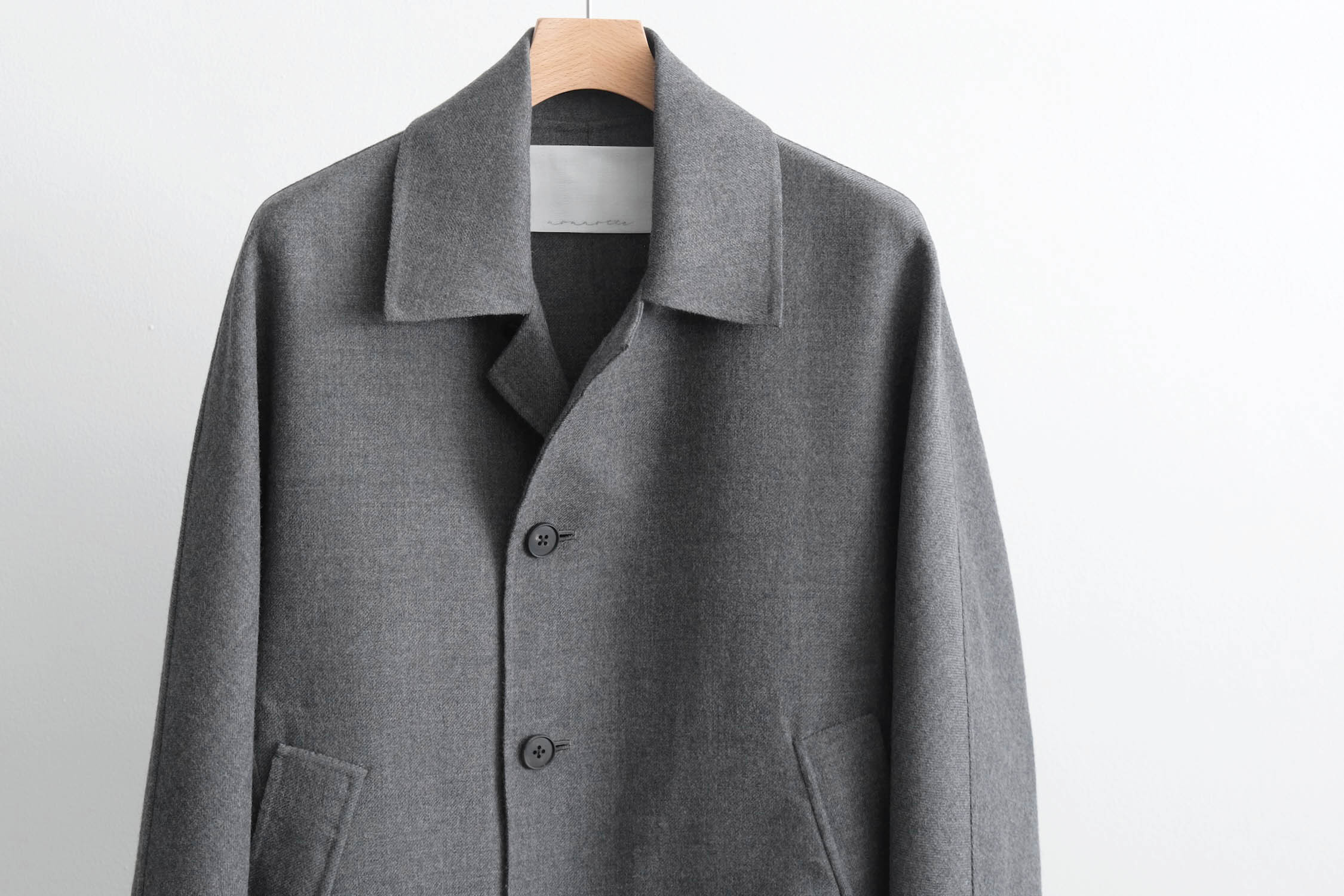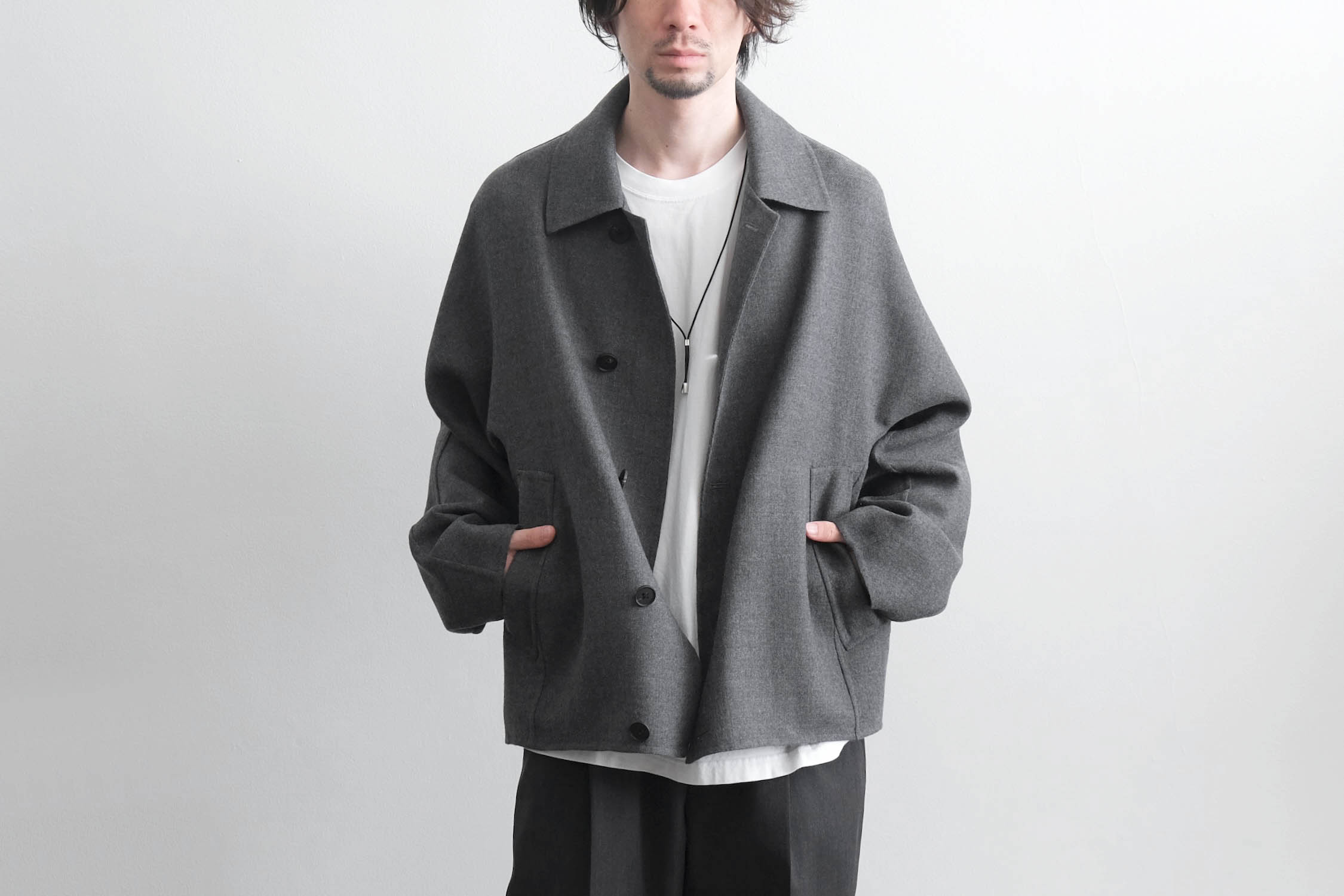 nonnotte - SUPER120S RIVER FLANNEL DRAPING KIMONO BLOUSON [CHARCOAL TOP]