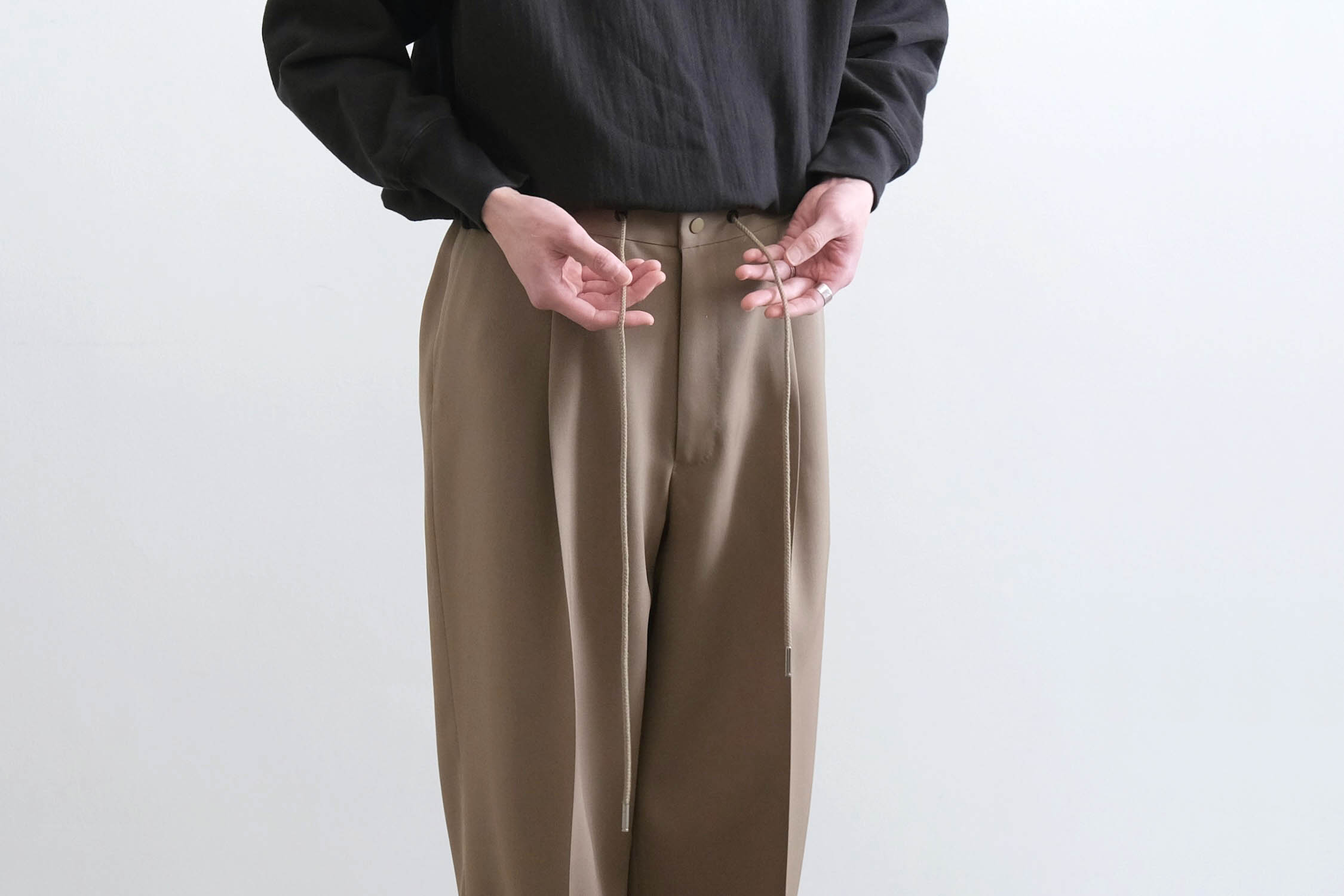 イージーパンツ特有のラフさを払拭した拘りのディテールも秀逸です。