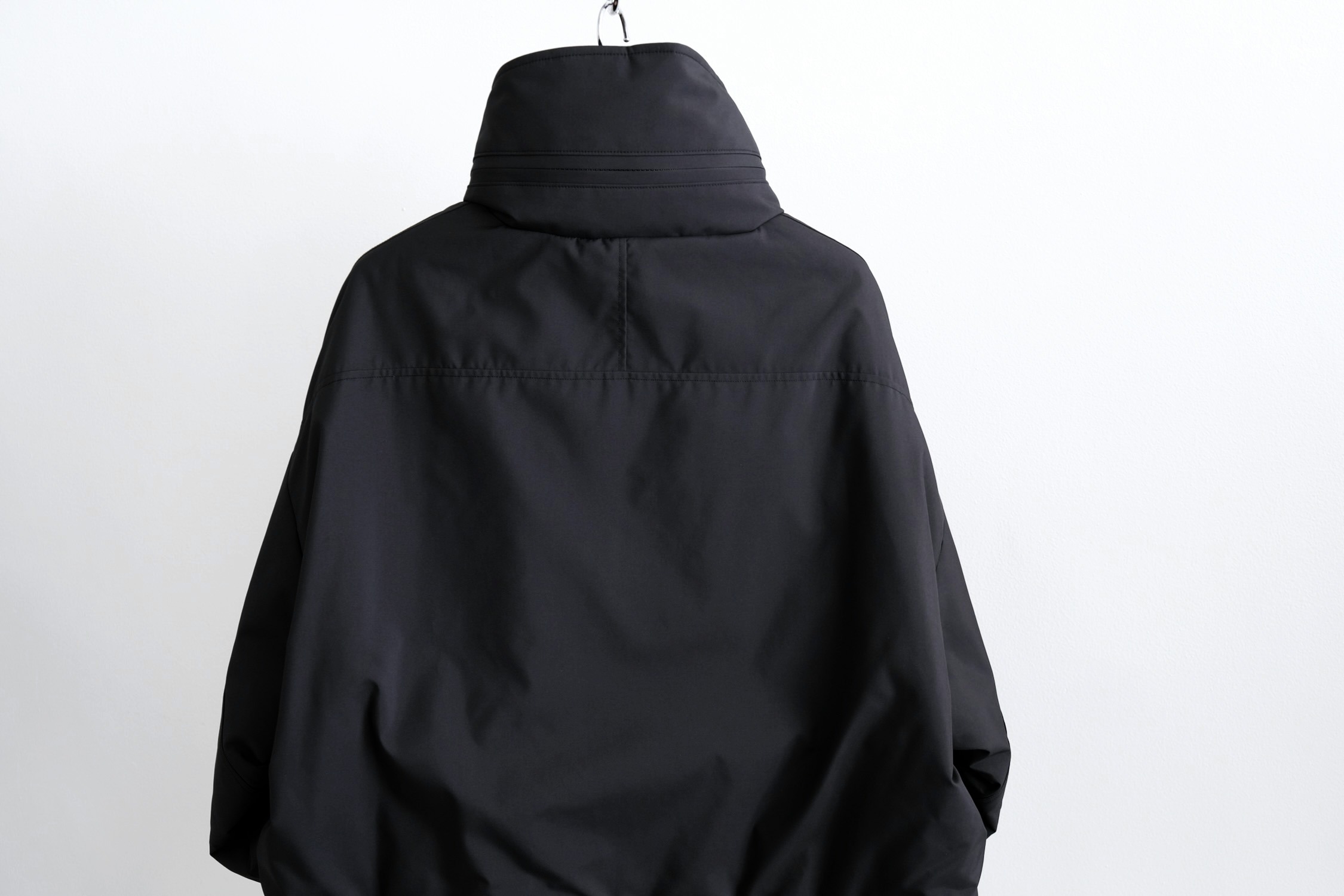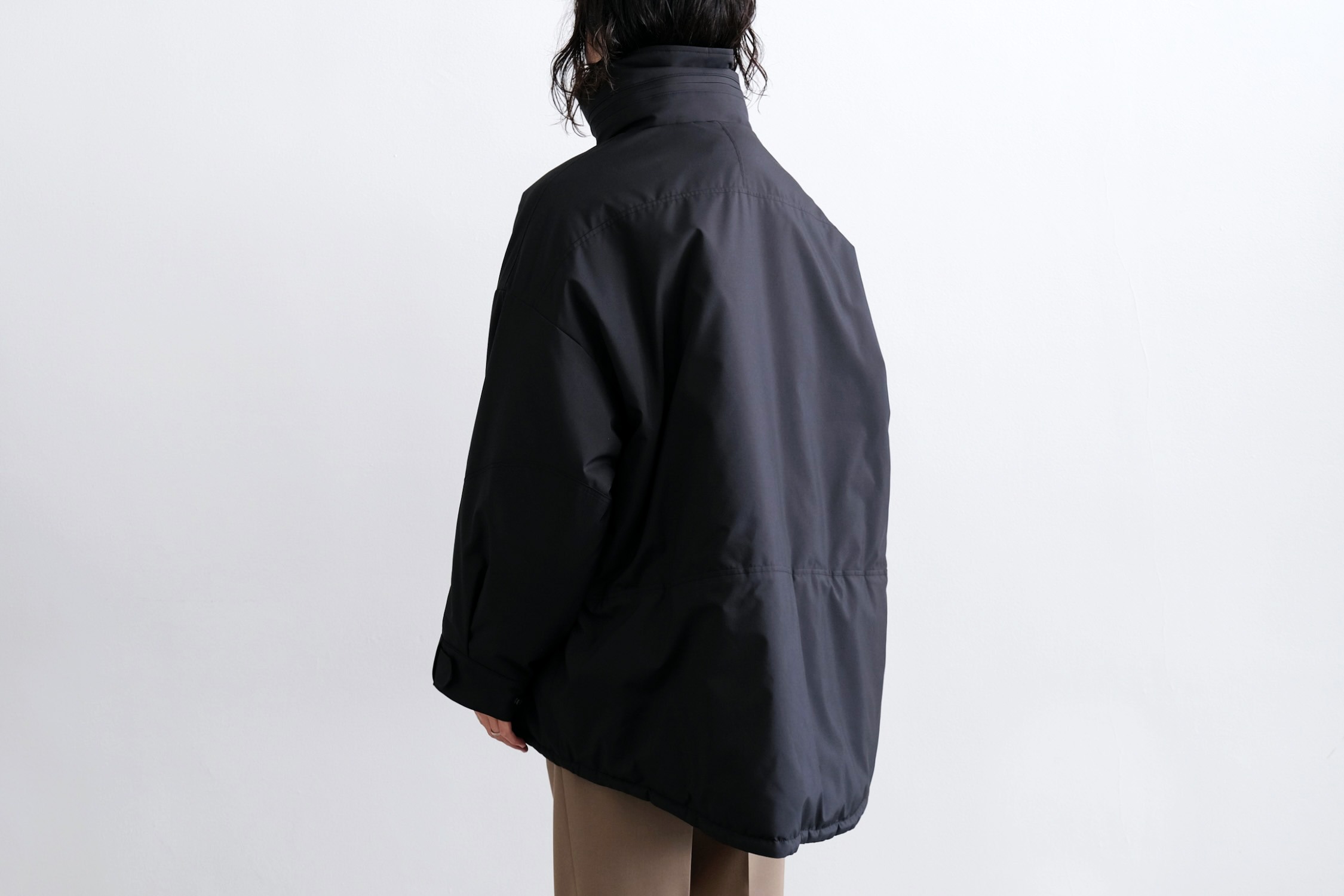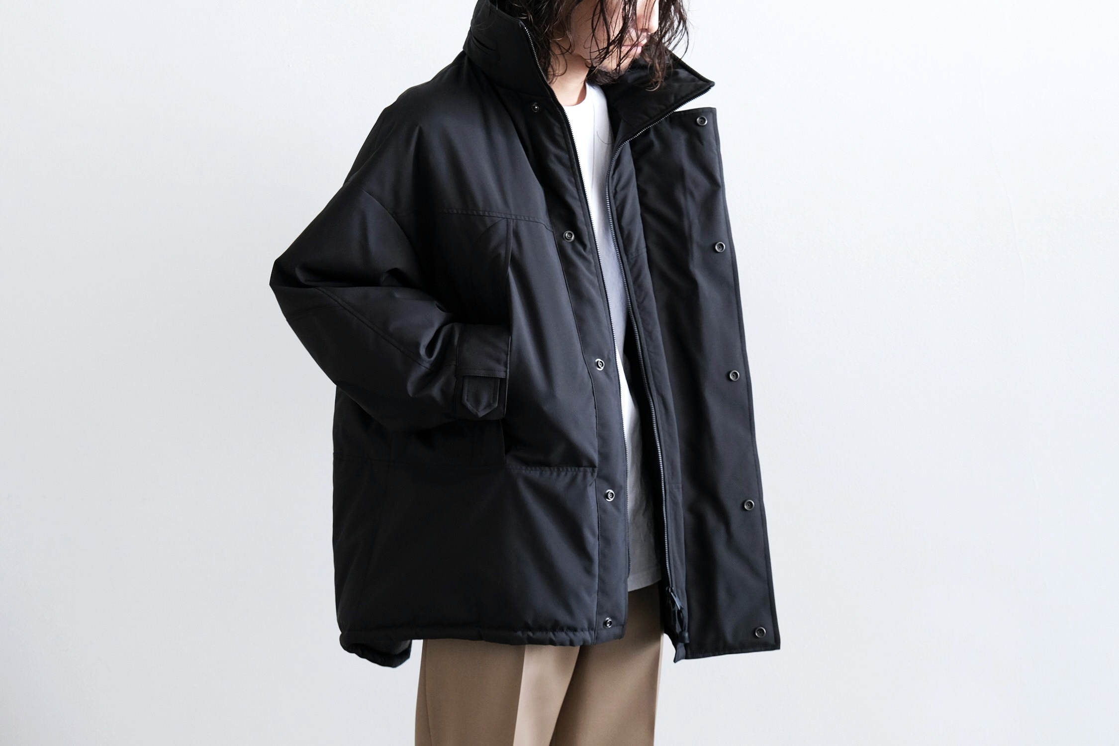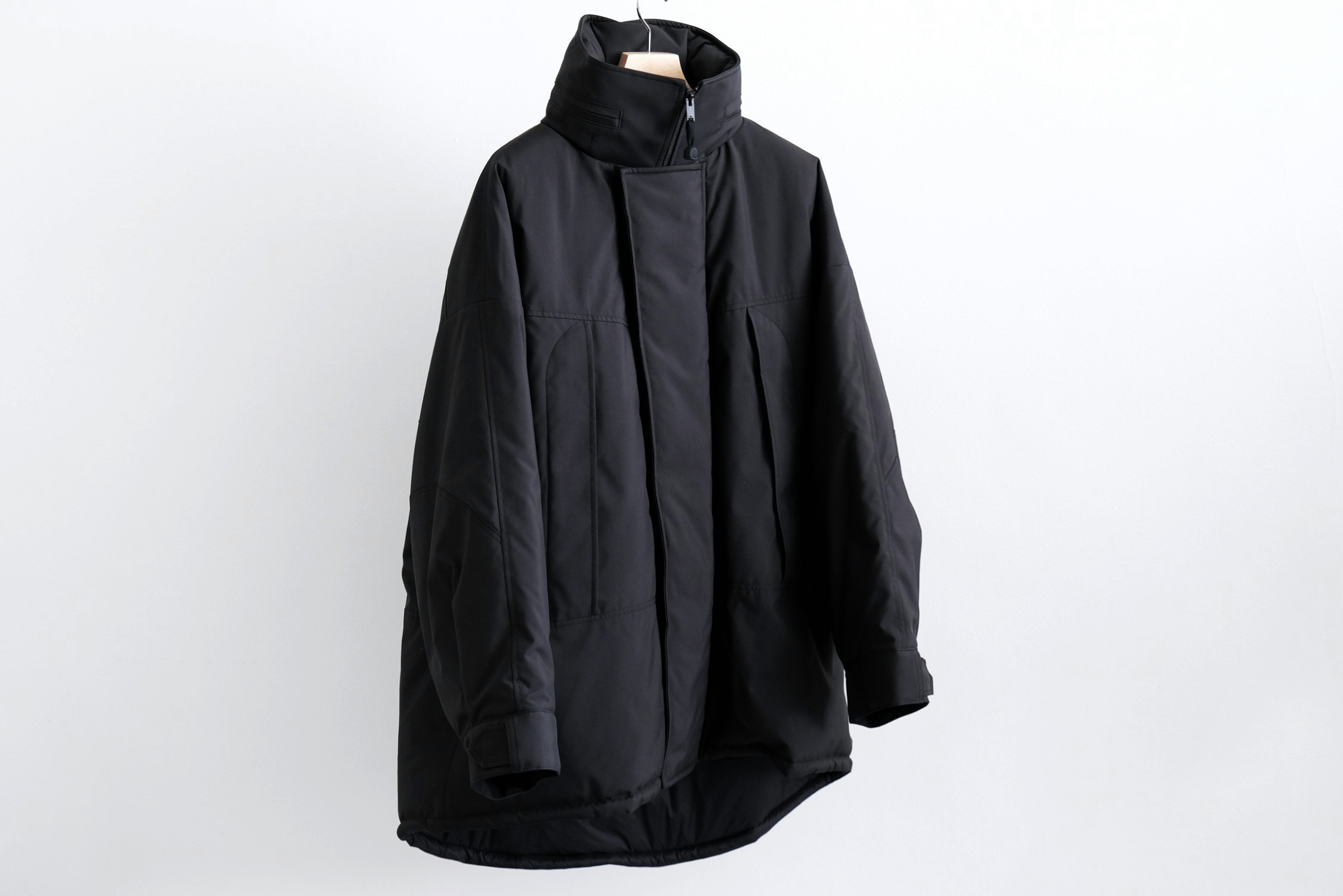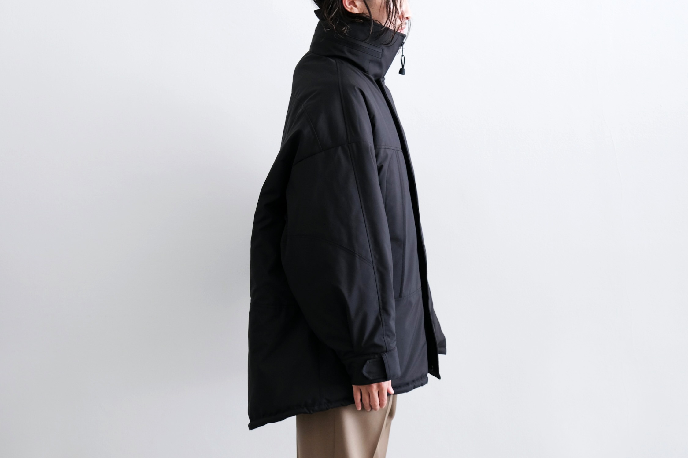素材のハリ感と独自のパターン設計による構築的なボリュームシルエットで窮屈さも感じません。
